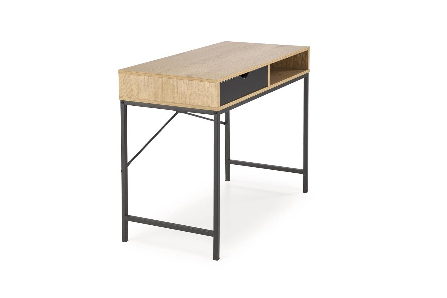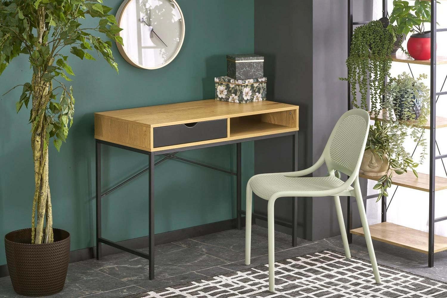 Biurko Bocka naturalny/czarny to idealne połączenie elegancji i funkcjonalności, które doskonale sprawdzi się w nowoczesnym wnętrzu. Jego design opiera się na harmonii między ciepłym odcieniem dębu złotego a głęboką czernią, co nadaje mu unikalny charakter. Dzięki temu biurko może stać się stylowym elementem w domowym gabinecie, pokoju młodzieżowym, a nawet w profesjonalnym biurze. Jego estetyka sprawia, że z łatwością wpasuje się zarówno w minimalistyczne, jak i bardziej klasyczne aranżacje wnętrz.
