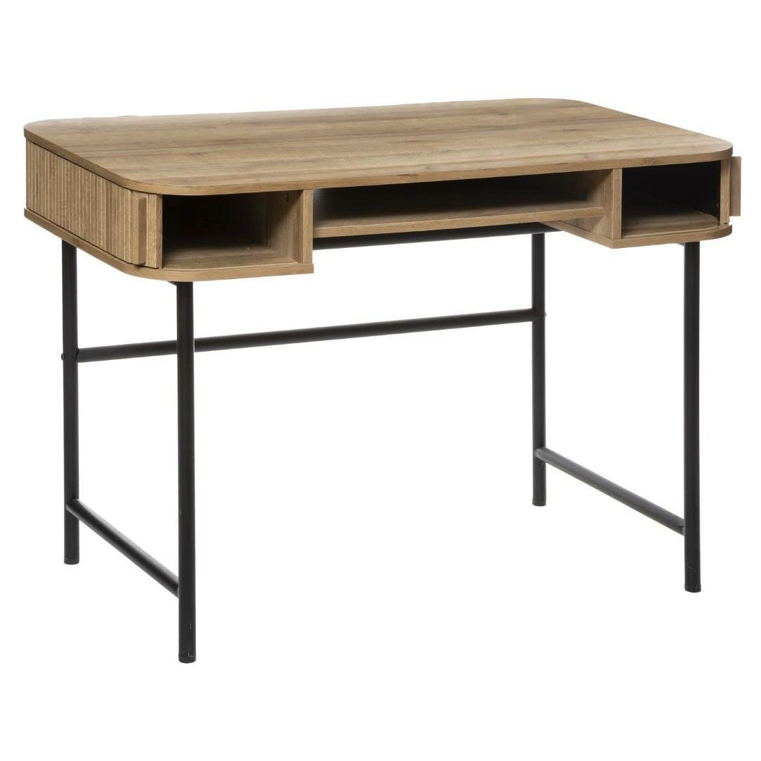 - Wykonane z drewna i metalu, biurko Colva ma solidną konstrukcję, która zapewnia trwałość i wytrzymałość, gwarantując długotrwałe użytkowanie mebla
