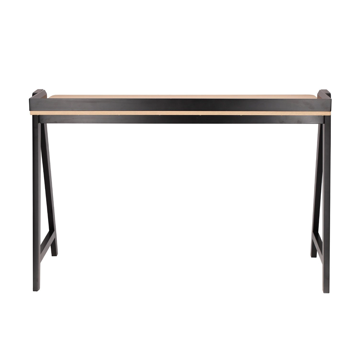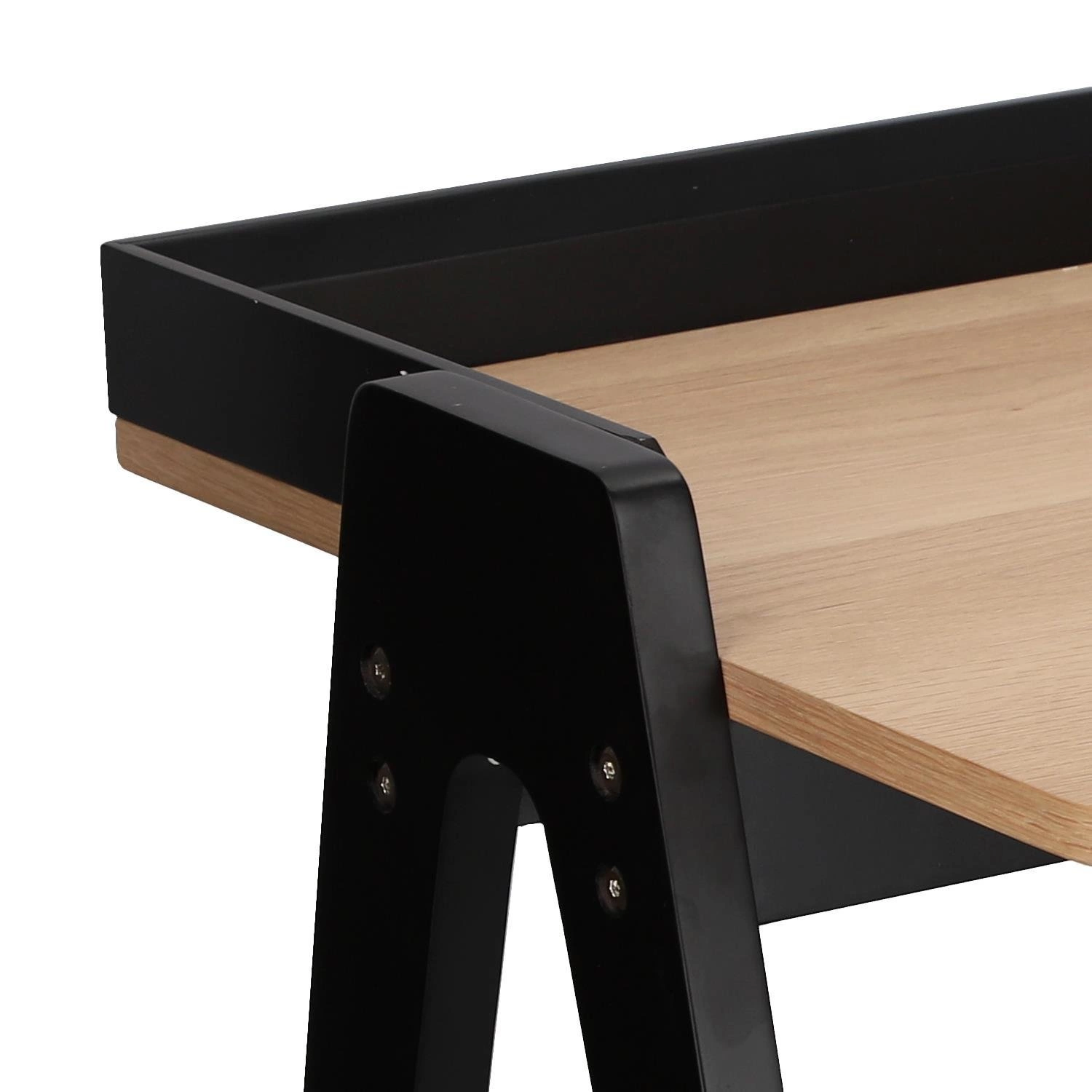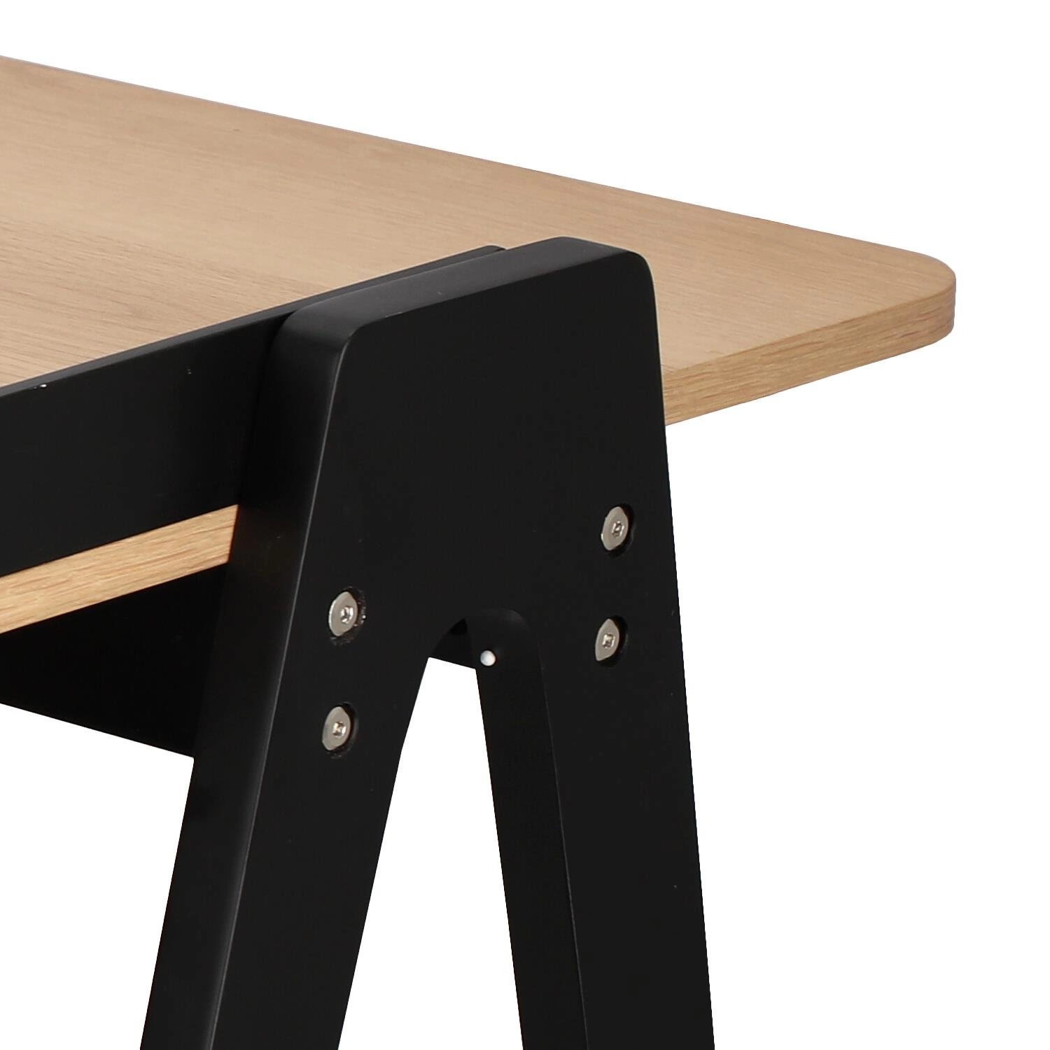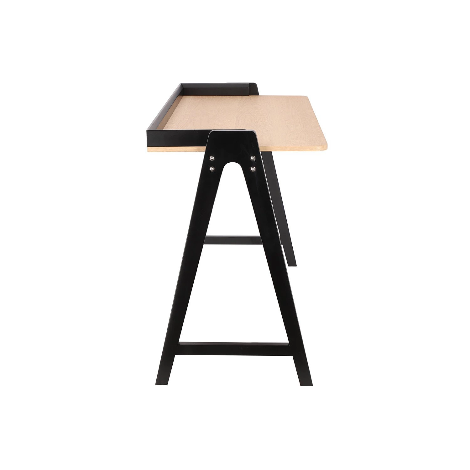 Nogi biurka ułożone w kształt litery A zapewniają wysokie poziom stabilności oraz stanowią wyjątkowy element wizualny. Charakterystyczną cechą biurka są także zaokrąglone rogi blatu.