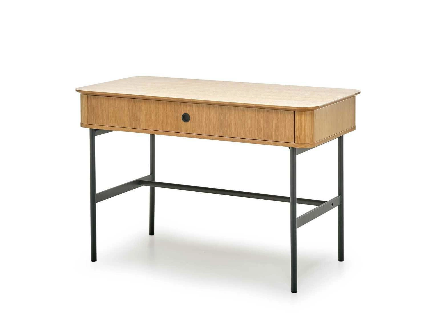 Biurko Zefir marki Intesi to nowoczesne biurko skandynawskie o szerokości 117 cm, łączące naturalne wykończenie dębu z czarną, stalową podstawą. Wyposażone w praktyczną szufladę oraz funkcjonalny, prostokątny blat, doskonale sprawdzi się jako biurko do pracy, nauki lub domowego biura. Subtelna stylistyka i kompaktowe wymiary czynią je idealnym wyborem do sypialni, pokoju młodzieżowego czy niewielkich przestrzeni.
