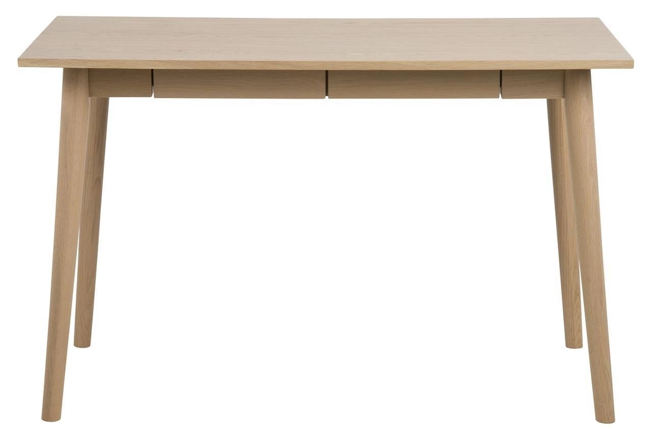 Biurko Marte zostało wykonane z płyty MDF pokrytej fornirem dębowym, dodatkowo pociągniętym lakierem zabezpieczającym z białym pigmentem. Biurko utrzymane jest w skandynawskim stylu, który stał się na tyle uniwersalny, że odnajdzie się w każdym wnętrzu. Biurko posiada 2 szuflady schowane pod blatem. Prosta forma oraz niewielkie wymiary sprawią, że biurko sprawdzi się zarówno w dużych jak i mniejszych pomieszczeniach.