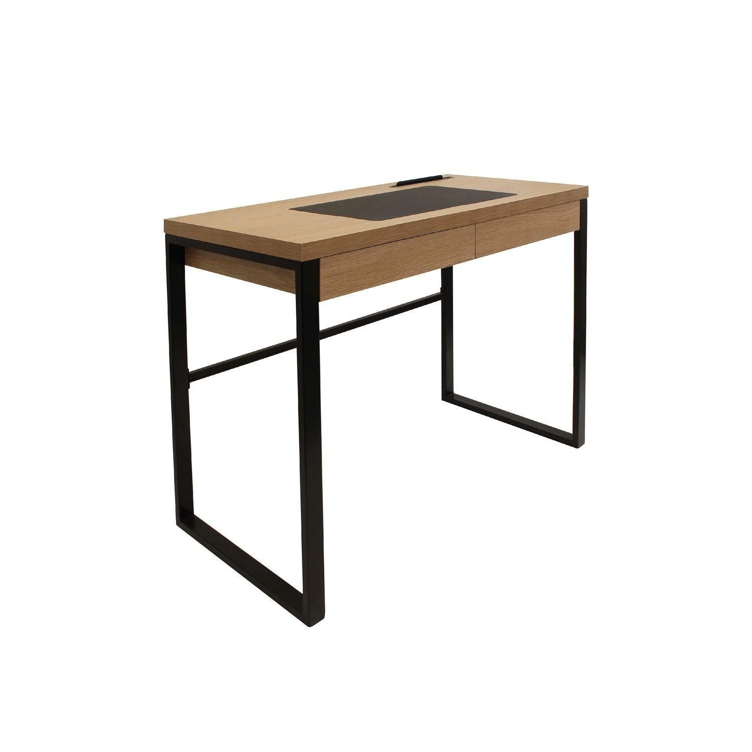Biurko Dolem Industrial z antypoślizgową podkładką z ekoskóry jest przykładem nowoczesnego designu, który kocha funkcjonalność. Wykończony okleiną dębową blat biurka posiada pojemną wysuwaną szufladę, która z łatwością pomieści akcesoria potrzebne do pracy. Solidna czarna podstawa wykonana z metalu nadaje całości surowego industrialnego akcentu. Wbudowany podkład z ekoskóry zapobiega przesuwaniu dokumentów, ale może również służyć jako elegancka podkładka na myszkę. Projektanci tego biurka industrialnego pomyśleli także o posiadaczach nowoczesnych technologii. Dyskretna metalowa rynienka będzie doskonałą podstawką na tablet lub smartfon. Biurko Dolem Industrial o wymiarach 100x76x50 cm stanie się centrum dowodzenia w nowocześnie urządzonym biurze lub gabinecie.