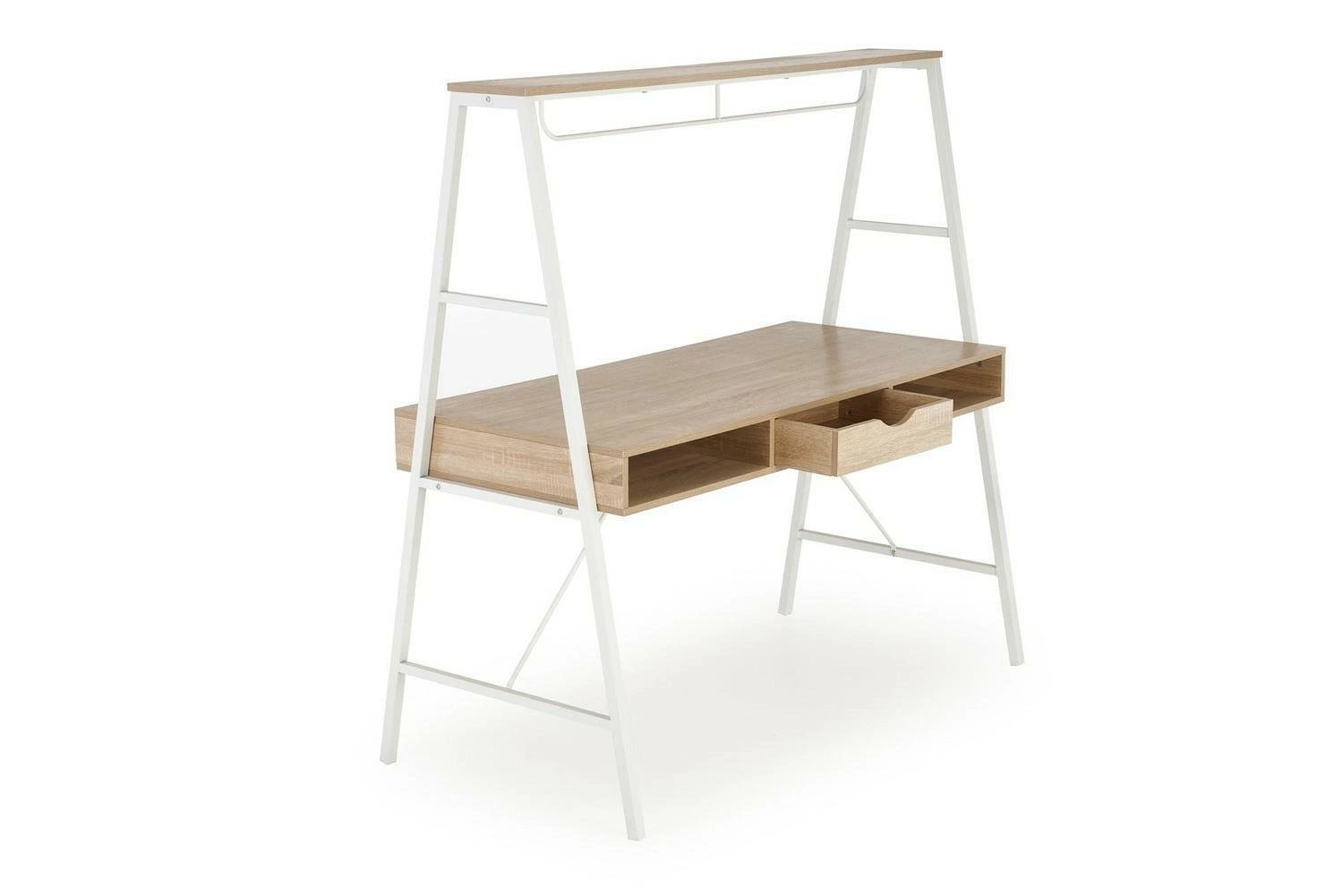 Dwustanowiskowe biurko Suplika | Intesi Uzyskaj idealne podwójne biurko dzięki Suplika firmy Intesi. Wykonane z płyty meblowej, fornirowanej w kolorze dębu sonoma i białym wykończeniu, dwustanowiskowe biurko posiada dwie szuflady, po jednej z każdej strony oraz półkę wykonaną z płyty MDF nad blatem. Przedstawiamy dwustanowiskowe biurko Suplika - idealną stację roboczą do pokoju młodzieżowego. Jest wytrzymałe, niezawodne i stylowe - wszystko, czego potrzebujesz, aby zachować produktywność przez cały dzień! Nasze dwustanowiskowe biurko o wymiarach 139/60/140 cm zapewnia wystarczająco dużo miejsca, aby wykonać swoje zadania bez poczucia zagracenia lub ograniczenia. Dodatkowo, dzięki dwóm pojemnym szufladom i półce wykonanej z płyty MDF nad blatem, możesz przechowywać wszystko, czego potrzebujesz pod ręką. Co więcej, jego nowoczesny blat o wysokości 75 cm jest wykończony w kolorze dębu sonoma i idealnie komponuje się z białym wykończeniem podstawy, dzięki czemu jego design jest gustowny i modny. Jeśli więc szukasz czegoś więcej niż tylko biurka i potrzebujesz czegoś, co podniesie Twój styl pracy, dwustanowiskowe biurko Suplika jest idealnym wyborem. O tym warto pamiętać! Zwiększa komfort i produktywność dzięki ergonomicznej konstrukcji Duża przestrzeń do przechowywania z dwiema szufladami i półką nad blatem Trwałe i zrównoważone materiały zaprojektowane z myślą o długowieczności Łatwe w samodzielnym montażu