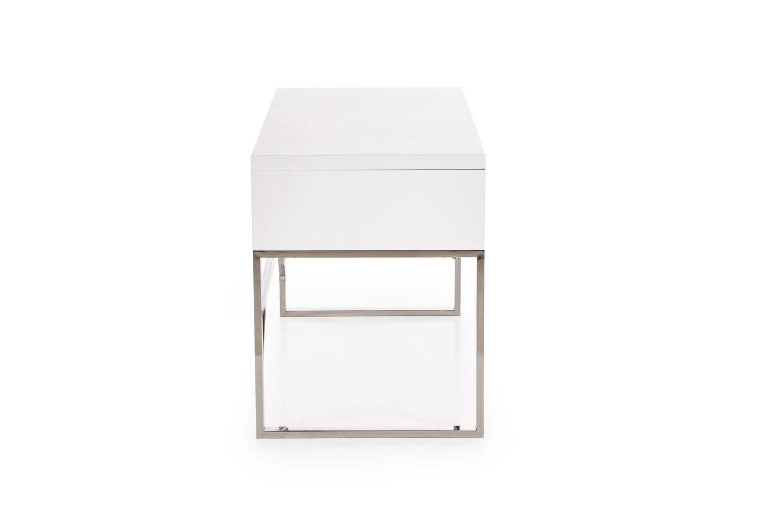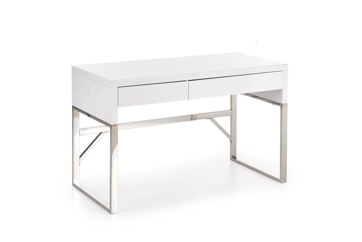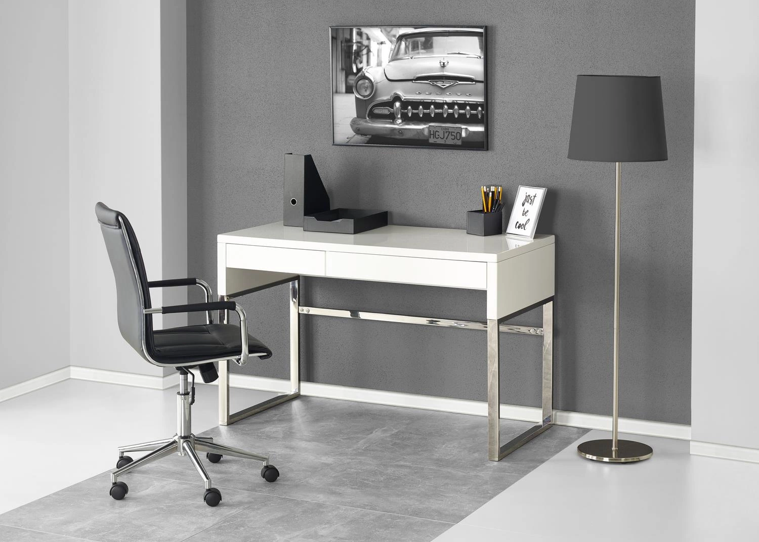 Biurko Galax lakierowany na wysoki połysk Biurko Galax to synonim nowoczesnej elegancji i funkcjonalności. Oferując nie tylko doskonałe miejsce do pracy, ale także zachwycający design, ten mebel został stworzony, aby stanowić centralny punkt zarówno w nowoczesnych, jak i glamour wnętrzach. Jego imponujące wymiary 120/60/76 cm zapewniają przestronną powierzchnię do pracy, tworzenia czy też chwil relaksu. Wykonane z najwyższej jakości materiałów, biurko Galax łączy w sobie MDF lakierowany na wysoki połysk oraz stal nierdzewną, co gwarantuje zarówno trwałość, jak i efektowny wygląd. Biały kolor nadaje mu lekkości i sprawia, że idealnie współgra z różnorodnymi aranżacjami wnętrz. Charakterystyczna podstawa w formie płóz w kolorze chrom to nie tylko element dekoracyjny, ale również rozwiązanie, które nadaje biurku stabilności i jednocześnie nadaje mu wyjątkowy charakter. Co więcej, mebel posiada dwie praktyczne szuflady, które zapewniają wygodne miejsce do przechowywania dokumentów, przyborów biurowych czy innych drobiazgów, które zawsze powinny być pod ręką. Biurko Galax to nie tylko miejsce pracy, ale również mebel, który emanuje luksusem i wyrafinowaniem. Sprawdzi się zarówno jako funkcjonalne biurko, które zachęca do kreatywności, jak i jako elegancka toaletka, która podkreśla urok codziennego rytuału pielęgnacyjnego. Upewnij się, że to dobry wybór! Biurko Galax łączy nowoczesny design z funkcjonalnością. Wykonane z MDF-u lakierowanego na wysoki połysk oraz stali nierdzewnej, co gwarantuje trwałość i wyjątkowy wygląd. Przestronne wymiary oraz dwie szuflady zapewniają wygodę użytkowania. Charakterystyczna podstawa w formie płóz w kolorze chrom dodaje meblowi stabilności i elegancji. Pasuje zarówno do wnętrz nowoczesnych, jak i glamour, nadając im wyjątkowego charakteru.