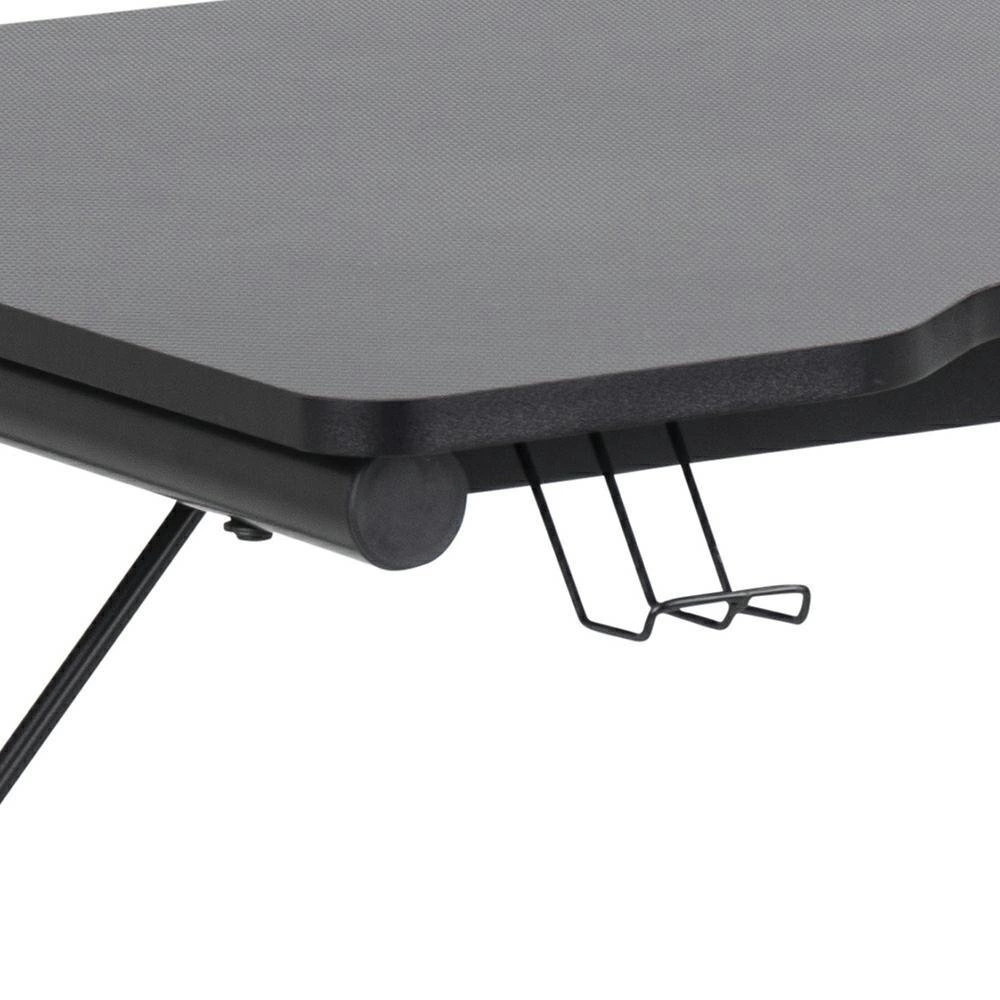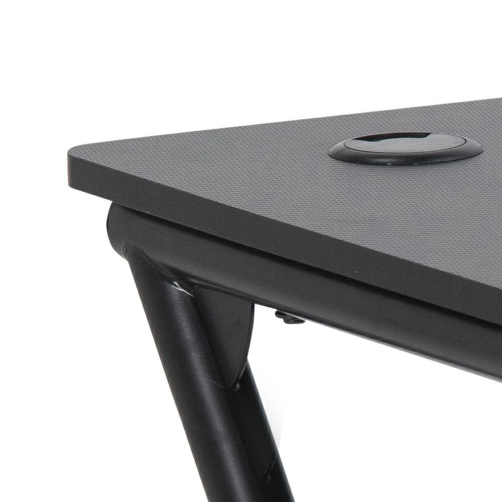 Industrialny charakter i prostota wykonania sprawia, że biurko jest ponadczasowe i uniwersalne. Biurko dla graczy zostało zrobione z metalowej podstawy. Charakterystyczne nogi biurka mają kształt litery Z. Blat biurka to czarna płyta MDF. Nieregularny kształt blatu został dopasowany do osób spędzających przy biurku wiele czasu.