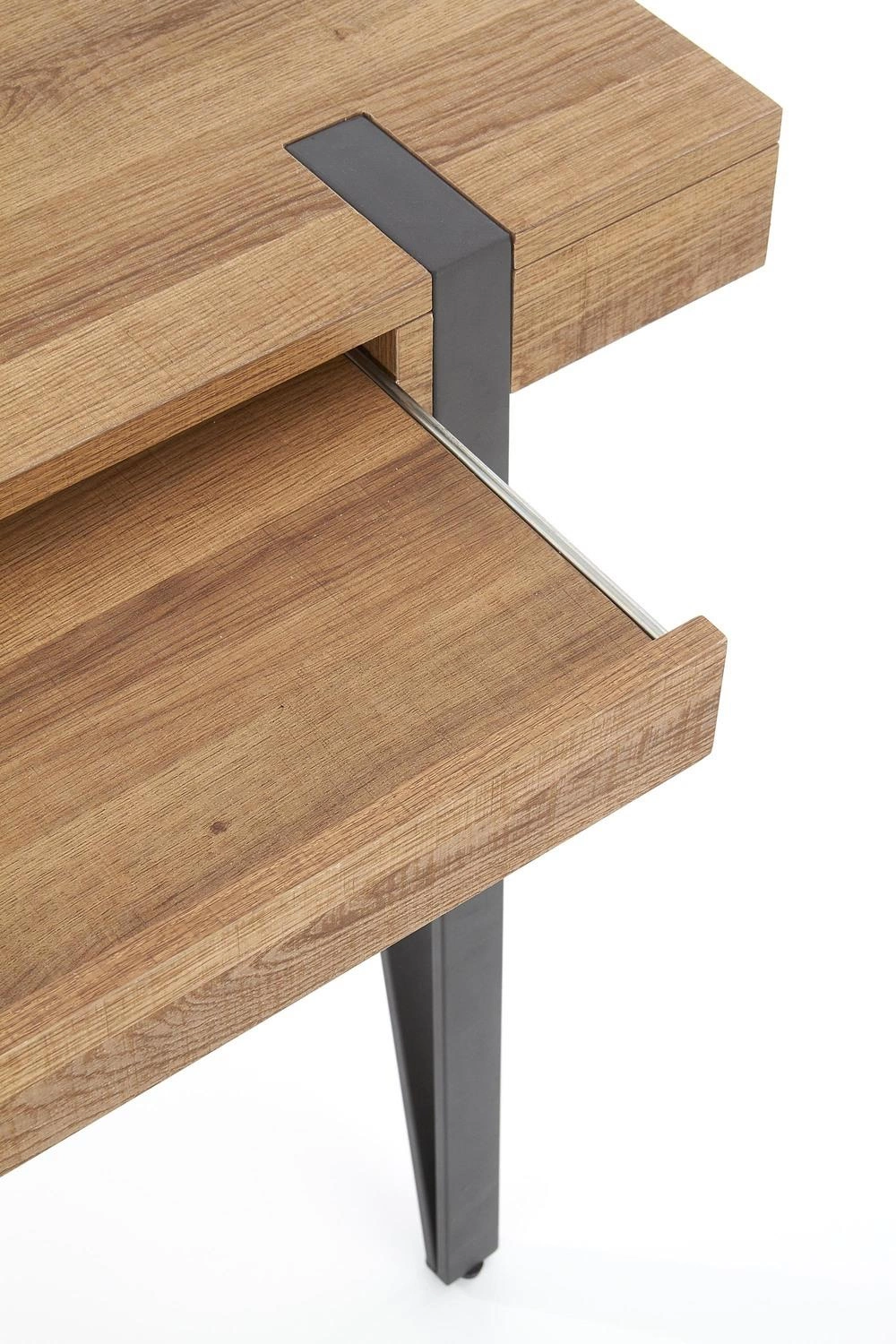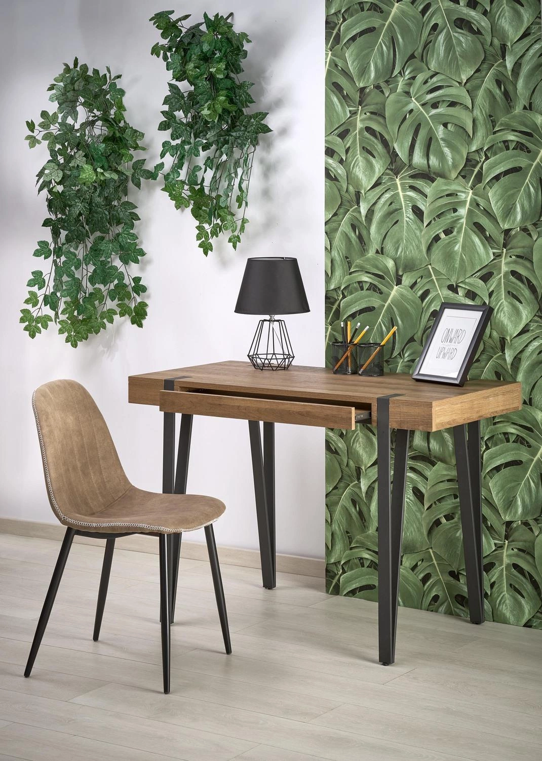 Biurko Indorika - Elegancja i Funkcjonalność do Nowoczesnego Wnętrza Biurko Indorika to harmonijne zestawienie elegancji i praktyczności, które dodadzą charakteru każdej przestrzeni. Mebel ten wykonany jest z laminowanego MDF-u i malowanej proszkowo stali, co gwarantuje zarówno estetykę, jak i trwałość. Kombinacja kolorów - orzech miodowy i czarny - tworzy kontrastujące zestawienie, które dodaje wnętrzu wyjątkowej głębi. Biurko Indorika to przykład funkcjonalności w eleganckim wydaniu. Wyposażone w szufladę, oferuje praktyczne miejsce do przechowywania, pozwalając zachować porządek wokół miejsca pracy. Ciekawym elementem konstrukcji są nietypowe, czarne nogi, które nadają meblowi nowoczesnego charakteru i tworzą subtelny akcent. To biurko to doskonała propozycja dla wielu aranżacji wnętrz, zwłaszcza nowoczesnych i loftowych. Dzięki swemu wyjątkowemu designowi oraz kontrastowym kolorom, staje się nie tylko praktycznym miejscem do pracy, ale także estetycznym akcentem w mieszkaniu. Upewnij się, że to dobry wybór! Biurko Indorika wykonane jest z laminowanego MDF-u i stali malowanej proszkowo, tworząc estetyczny i trwały mebel. Kolor orzecha miodowego i czarnego tworzy atrakcyjny kontrast, nadając wnętrzu wyjątkowej głębi. Wyposażone w szufladę, biurko oferuje miejsce do przechowywania, pomagając zachować porządek. Nietypowe, czarne nogi dodają biurku charakteru i nowoczesnego wyglądu. Biurko może pełnić rolę funkcjonalnego biurka do pracy lub eleganckiej toaletki, dostosowując się do różnorodnych potrzeb wnętrza.