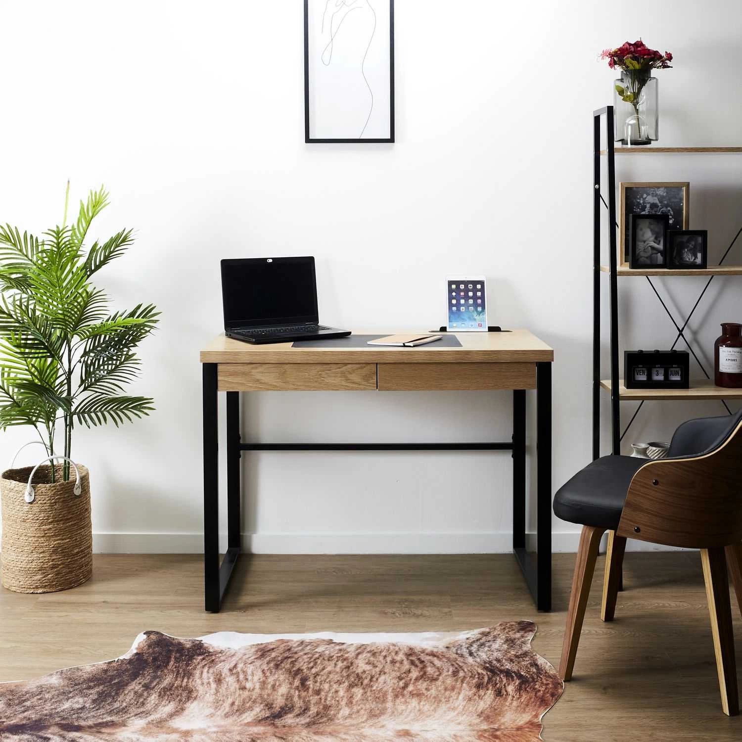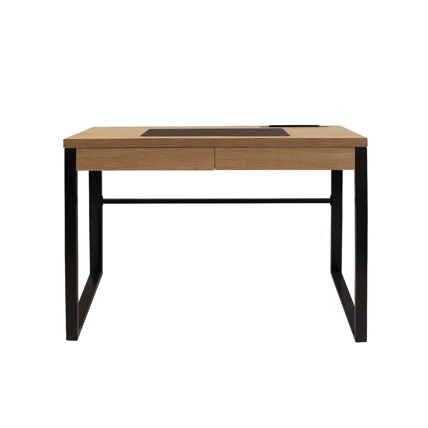 Biurko Dolem Industrial z antypoślizgową podkładką z ekoskóry jest przykładem nowoczesnego designu, który kocha funkcjonalność. Wykończony okleiną dębową blat biurka posiada pojemną wysuwaną szufladę, która z łatwością pomieści akcesoria potrzebne do pracy. Solidna czarna podstawa wykonana z metalu nadaje całości surowego industrialnego akcentu. Wbudowany podkład z ekoskóry zapobiega przesuwaniu dokumentów, ale może również służyć jako elegancka podkładka na myszkę. Projektanci tego biurka industrialnego pomyśleli także o posiadaczach nowoczesnych technologii. Dyskretna metalowa rynienka będzie doskonałą podstawką na tablet lub smartfon. Biurko Dolem Industrial o wymiarach 100x76x50 cm stanie się centrum dowodzenia w nowocześnie urządzonym biurze lub gabinecie.
