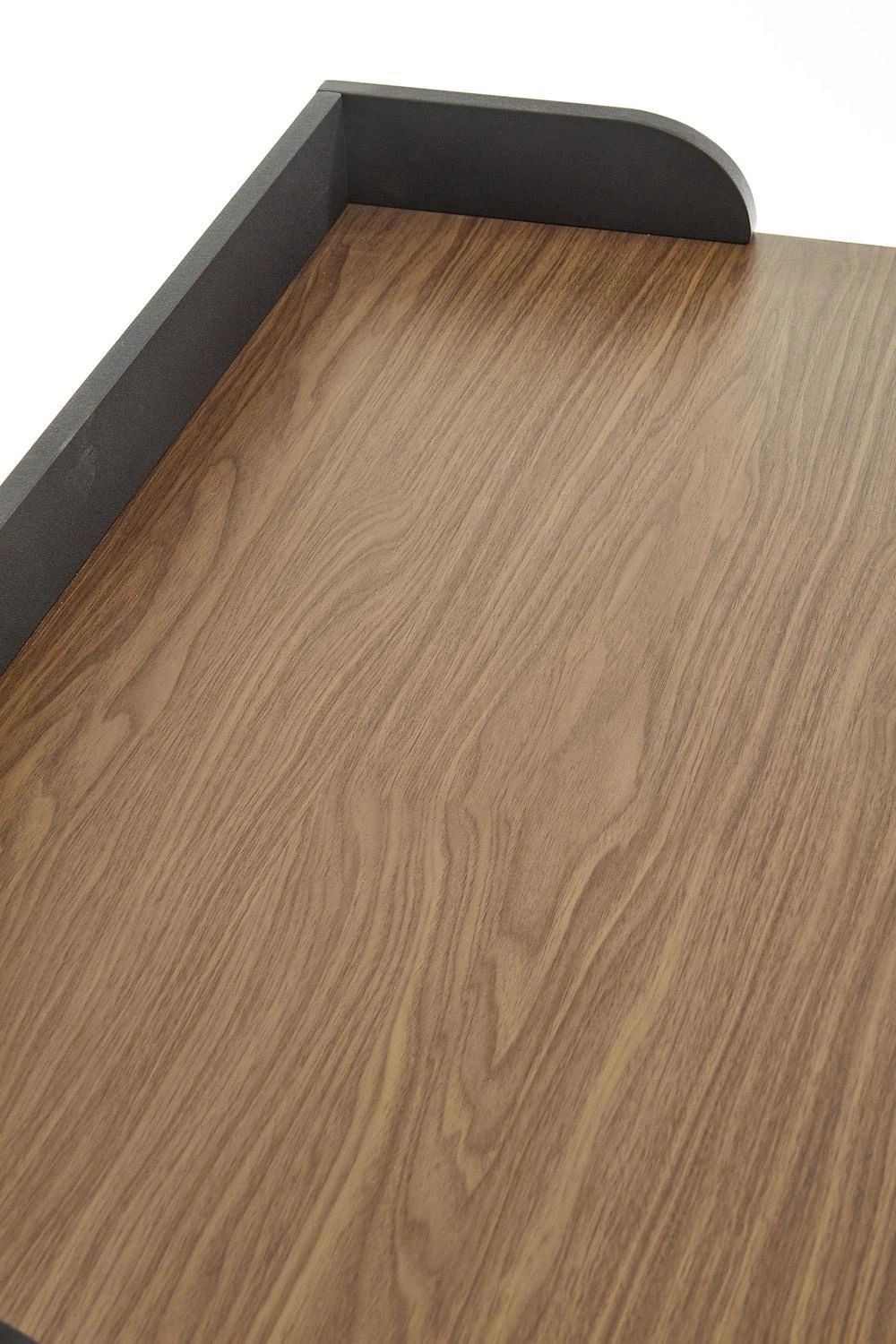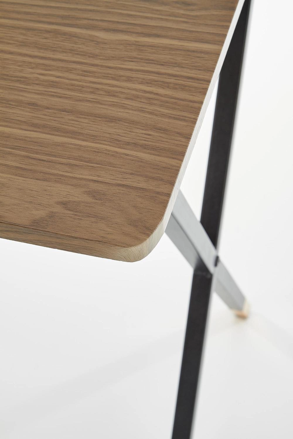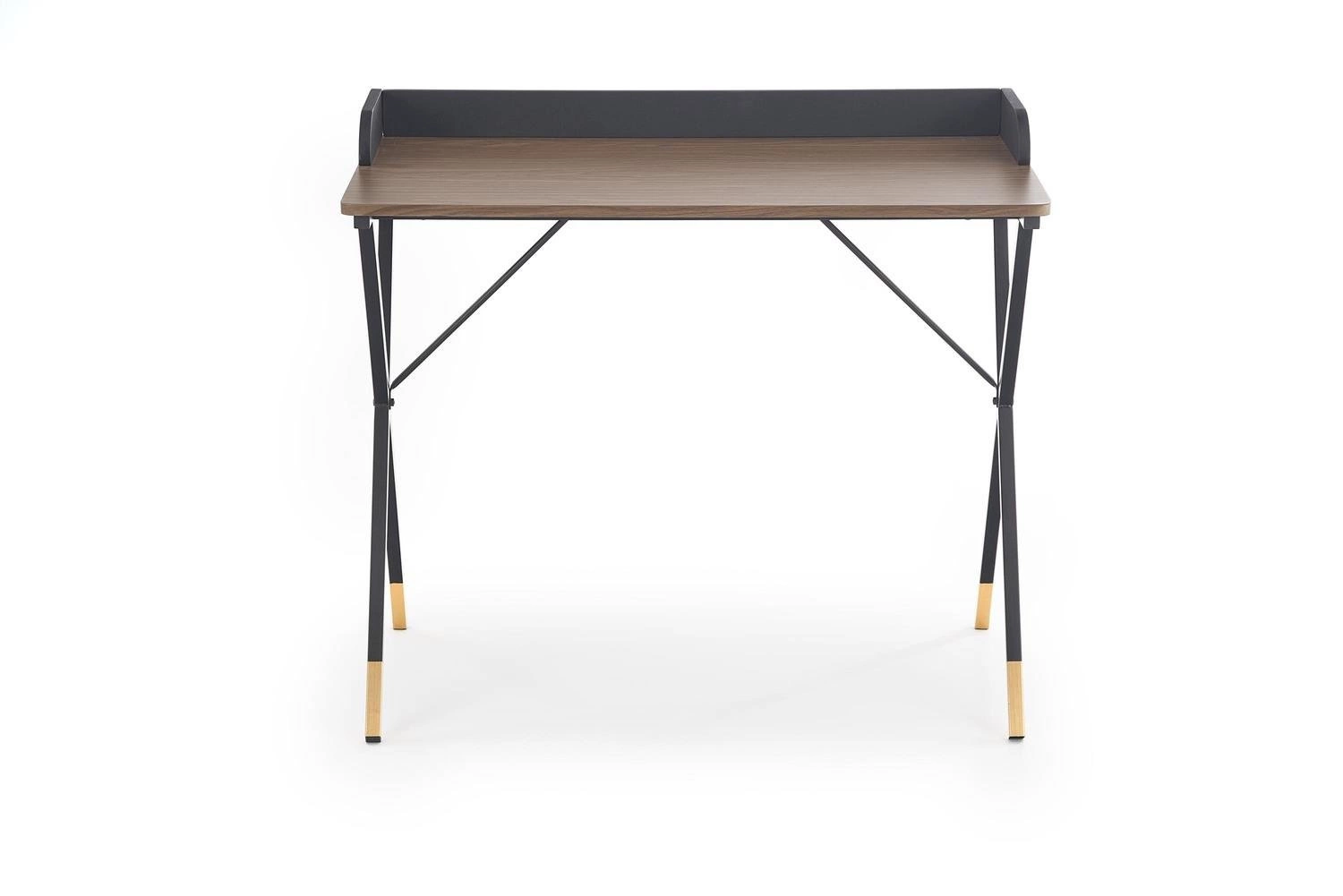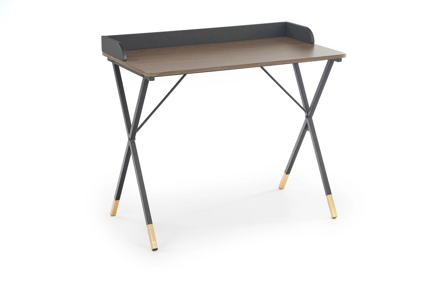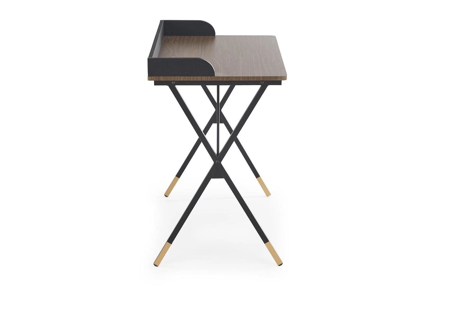 Biurko industrialne - Indira | Intesi Uzyskaj wygląd nowoczesnego stylu industrialnego dzięki biurku Indira firmy Intesi. Wyposażone w orzechowo - czarny blat z płyty MDF oraz malowaną proszkowo stalową podstawę w kolorze czarnym i złotym wykończeniem, wielofunkcyjny element dodaje eleganckiego wyrafinowania każdej przestrzeni. Gdyby styl i użyteczność były jednym biurkiem, byłoby to biurko Indira! Eleganckie, nowoczesne biurko zapewnia szykowny minimalizm dzięki połączeniu kolorów orzechowo-czarnego i czarno-złotego wykończenia, ale nie daj się zwieść jego prostemu designowi - biurko zostało stworzone dla biznesu. Wymiary 90/50/76 cm sprawiają, że idealnie nadaje się do gabinetu, domowego biura lub profesjonalnego miejsca pracy. Wysokiej jakości materiały, w tym laminowany blat MDF i malowana proszkowo stalowa podstawa, gwarantują, że biurko to przetrwa próbę czasu. Niezależnie od tego, czy jesteś początkującym przedsiębiorcą, uczniem, czy po prostu urządzasz kącik rzemieślniczy, biurko Indira jest gotowe na wszystko, co tworzysz. Nie czekaj więc: wykonuj swoją pracę w dobrym stylu z biurkiem Indira! O tym warto pamiętać! Ciesz się eleganckim wyglądem i nietuzinkowym stylem Niezrównany komfort i ergonomia w domowym biurze Dopasuj to pięknie zaprojektowane biurko do każdego pomieszczenia w domu dzięki jego eleganckiemu i nowoczesnemu designowi Korzystaj ze stabilności i wytrzymałości tego biurka dzięki konstrukcji ze stali