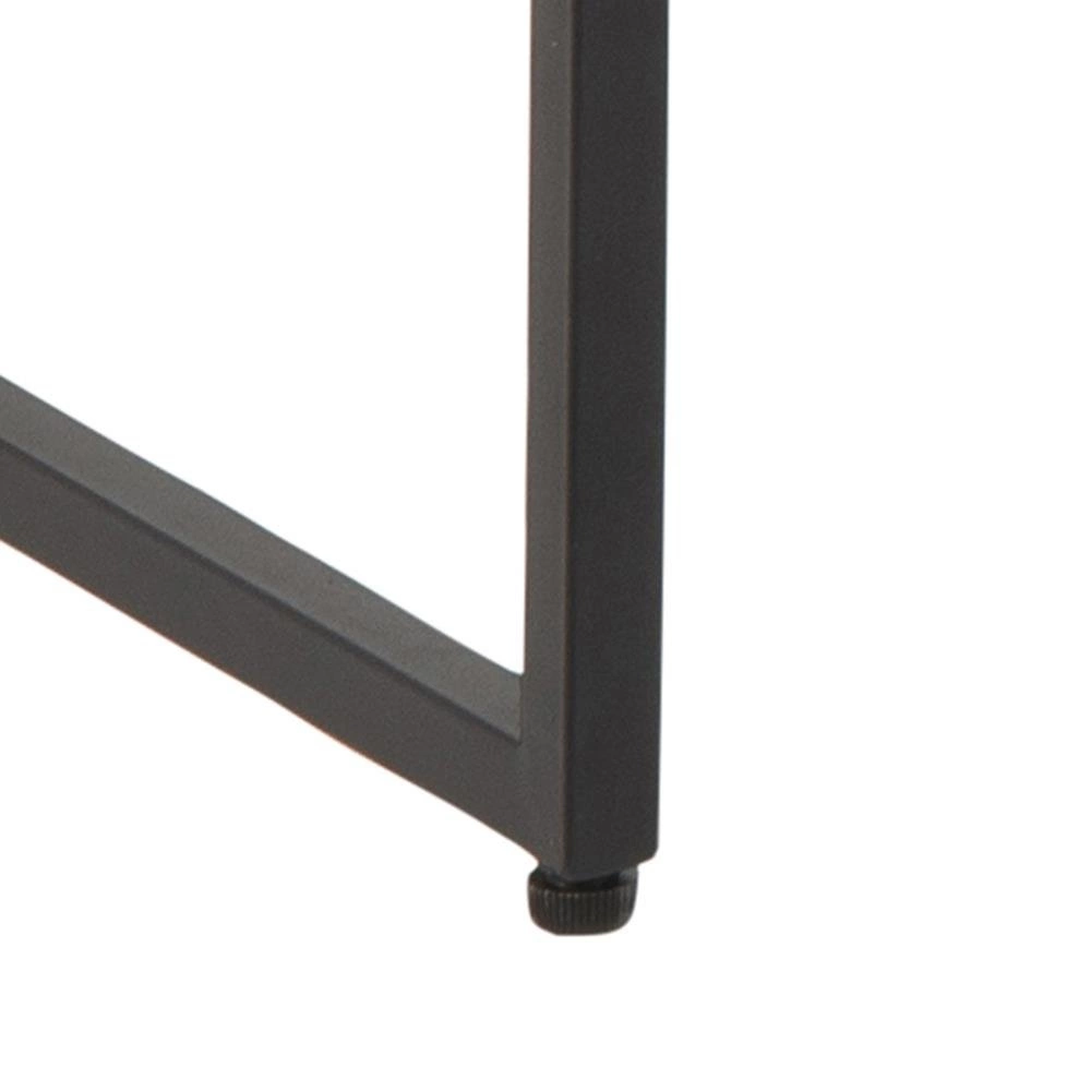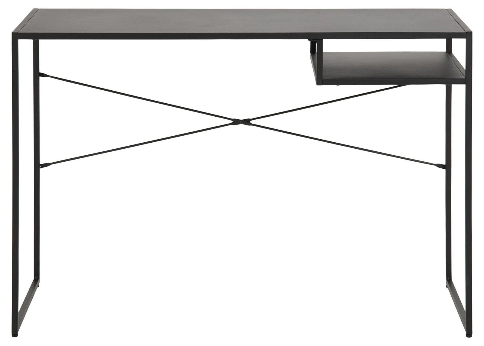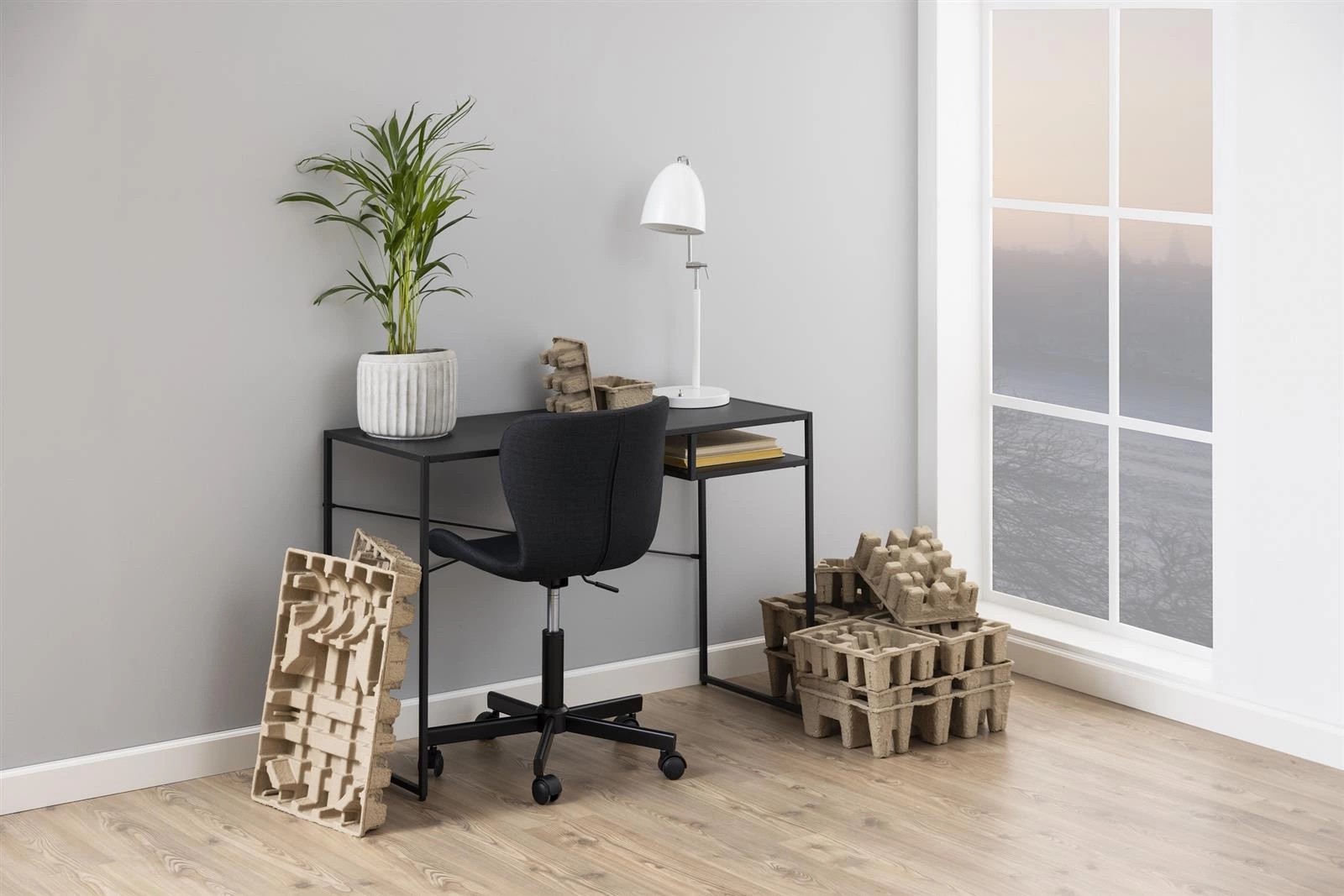 Biurko Newcastle jest wykonane z metalu malowanego proszkowo. Matowe wykończenie powierzchni wygląda niezwykle elegancko i stylowo. Po prawej stronie mebla znajduje się półka - możesz w niej ukryć drobiazgi, które chcesz mieć pod ręką. Dopełnieniem całości są smukłe, czarne nogi.