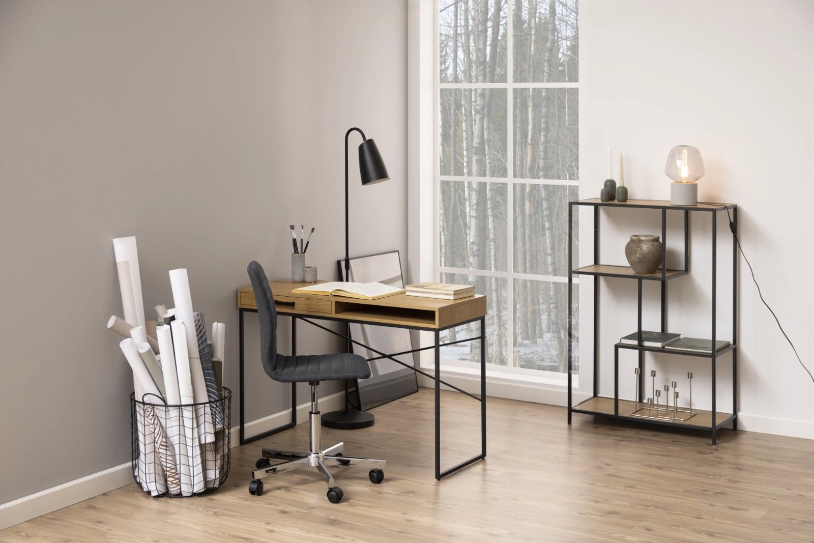 Biurko Seaford z szufladą to mebel w stylu minimalistycznym idealny do pokoju młodzieżowego lub domowego biura. Jest to efektowny i elegancki model, który swoim wyglądem zachwyci każdego. Wkomponuje się we wnętrza urządzone w stylu skandynawskim, industrialnym i nowoczesnym. Sprawdzi się także w mniejszych pomieszczeniach, gdyż jego szerokość wynosi 110 cm.