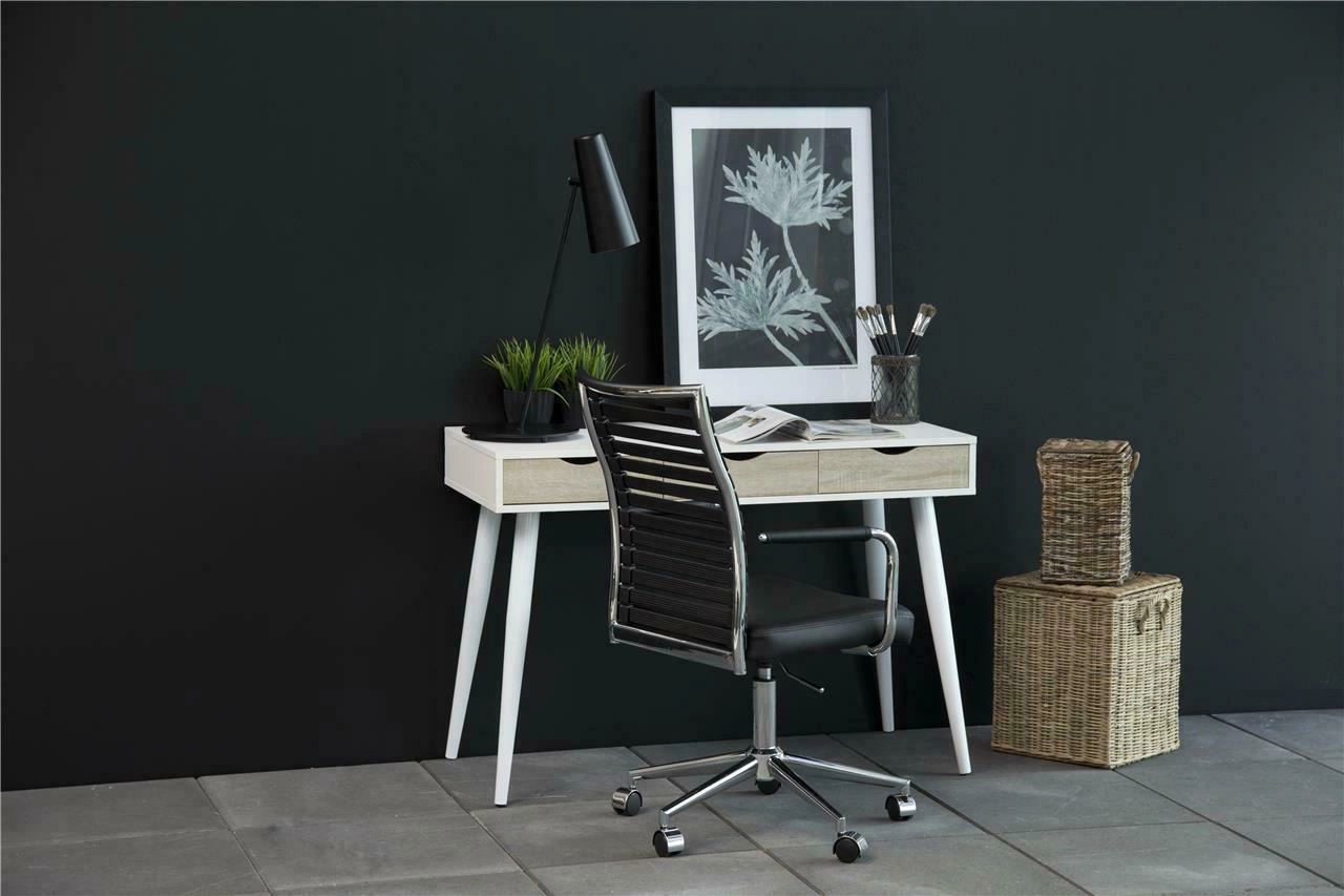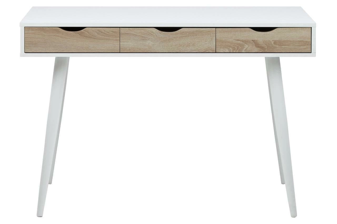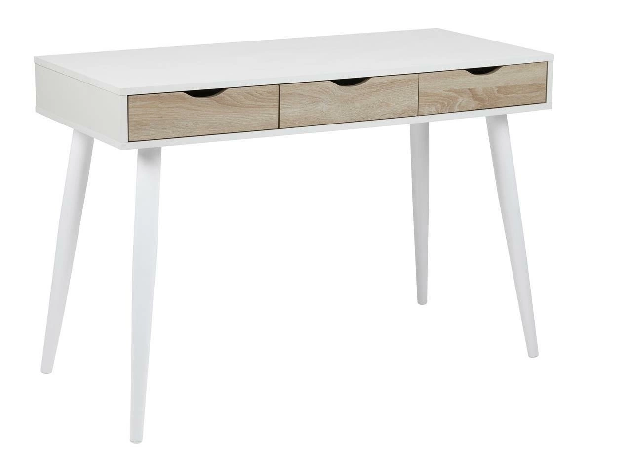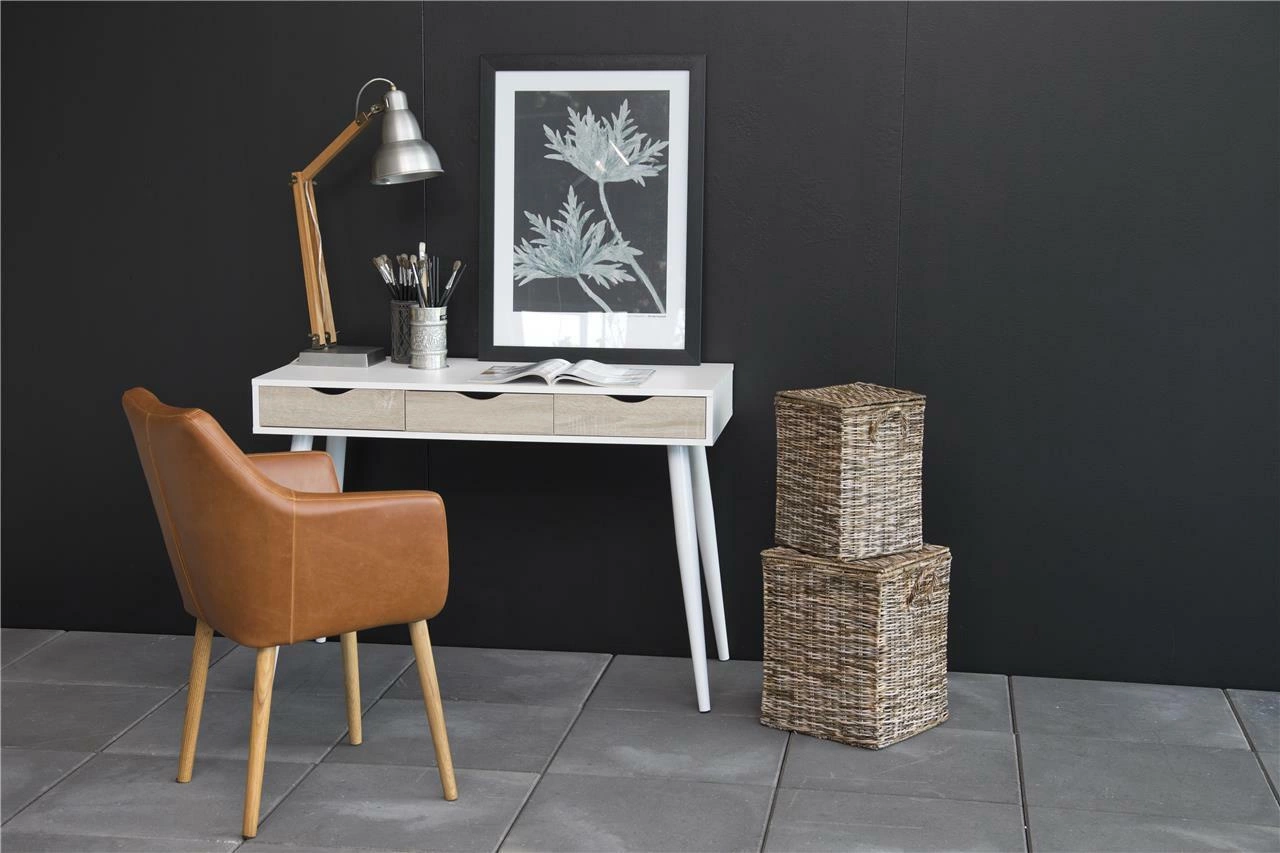 Biurko Scandi posiada klasyczne, matowe wykończenie, które mu niepowtarzalnego, eleganckiego charakteru. Szerokość biurka wynosi 110 cm. Dzięki takim wymiarom będzie praktycznym dodatkiem do dużych, jak i niewielkich pomieszczeń. Spełni swoją rolę w biurze, gabinecie czy pokoju nastolatka.