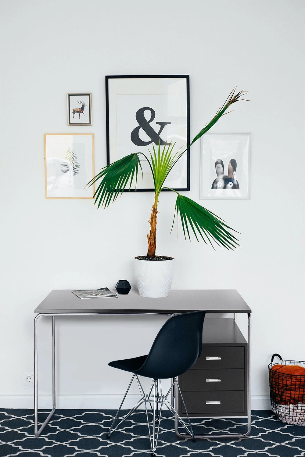 Biurko biurowe w stylu modern doskonale wygląda w eleganckich, minimalistycznych wnętrzach. Prosty blat i chromowane elementy biurka będą doskonale współgrać z nowoczesnym krzesłem biurowym ze skóry i lampą architekta.
