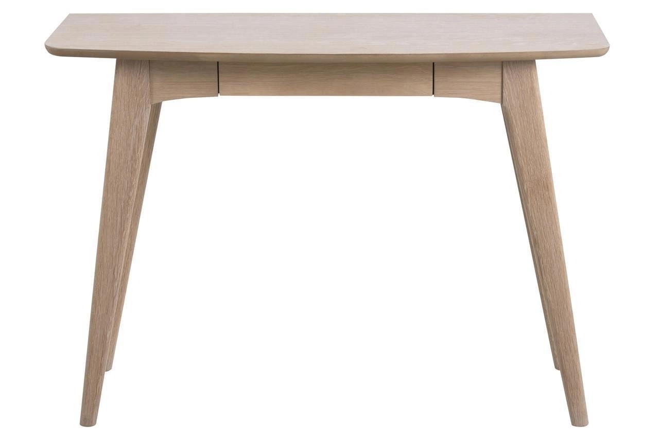 Dębowa podstawa oraz fornirowany blat wraz z szufladą zostały dodatkowo pokryte lakierem z białym pigmentem.