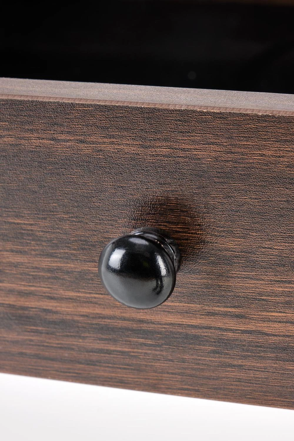 Kolorystyka biurka, w połączeniu z orzechowym blatem i czarną stalową konstrukcją, nadaje mu stylowy i nowoczesny wygląd. Pasuje zarówno do klasycznych, jak i nowoczesnych wnętrz, dodając im elegancji i charakteru. Wysokość blatu wynosząca 75 cm zapewnia optymalne warunki do pracy, niezależnie od tego, czy korzystasz z biurka w domu, biurze czy pracowni. Możesz swobodnie siedzieć przy nim lub postawić na nim laptopa i pracować na stojąco, co wpływa pozytywnie na Twoje zdrowie i komfort.