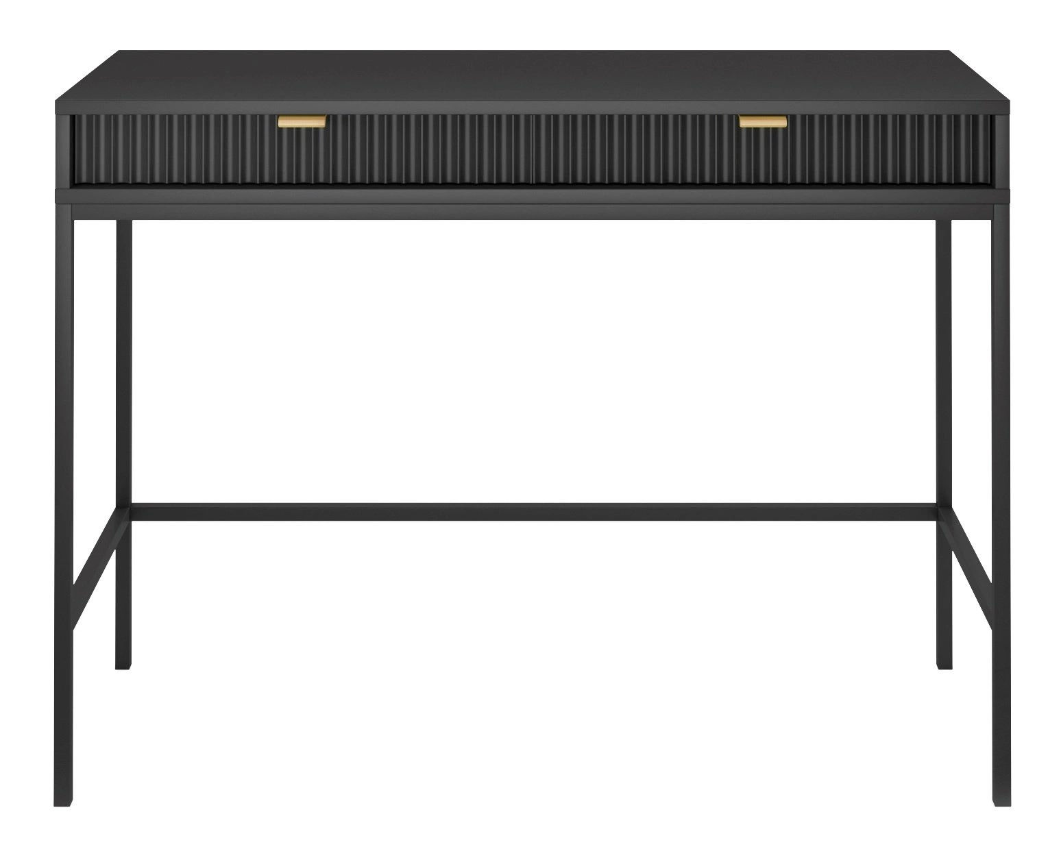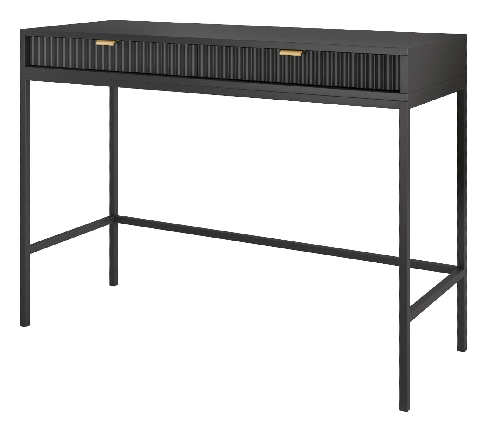 Poznaj toaletkę Delicious, która jest absolutnym must-have dla tych, którzy chcą przenieść styl swojego wnętrza na wyższy poziom! Nowoczesny i efektowny design toaletki z ryflowanymi frontami szuflad i stylowymi aluminiowymi uchwytami w złotym kolorze sprawi, że doda ona wyjątkowego uroku każdej przestrzeni. Duży rozmiar - 104 cm szerokości i 50 cm głębokości — zapewni mnóstwo miejsca do przechowywania różnych drobiazgów, od kluczy po ładowarki do telefonów czy kosmetyki. Ustawiona w przedpokoju lub salonie spełni funkcję subtelnej konsoli, natomiast w sypialni stanie się ulubionym miejscem każdej kobiety. Obszerny blat toaletki pozwoli ustawić na niej lustro, różnego typu organizery oraz eleganckie dekoracje.
