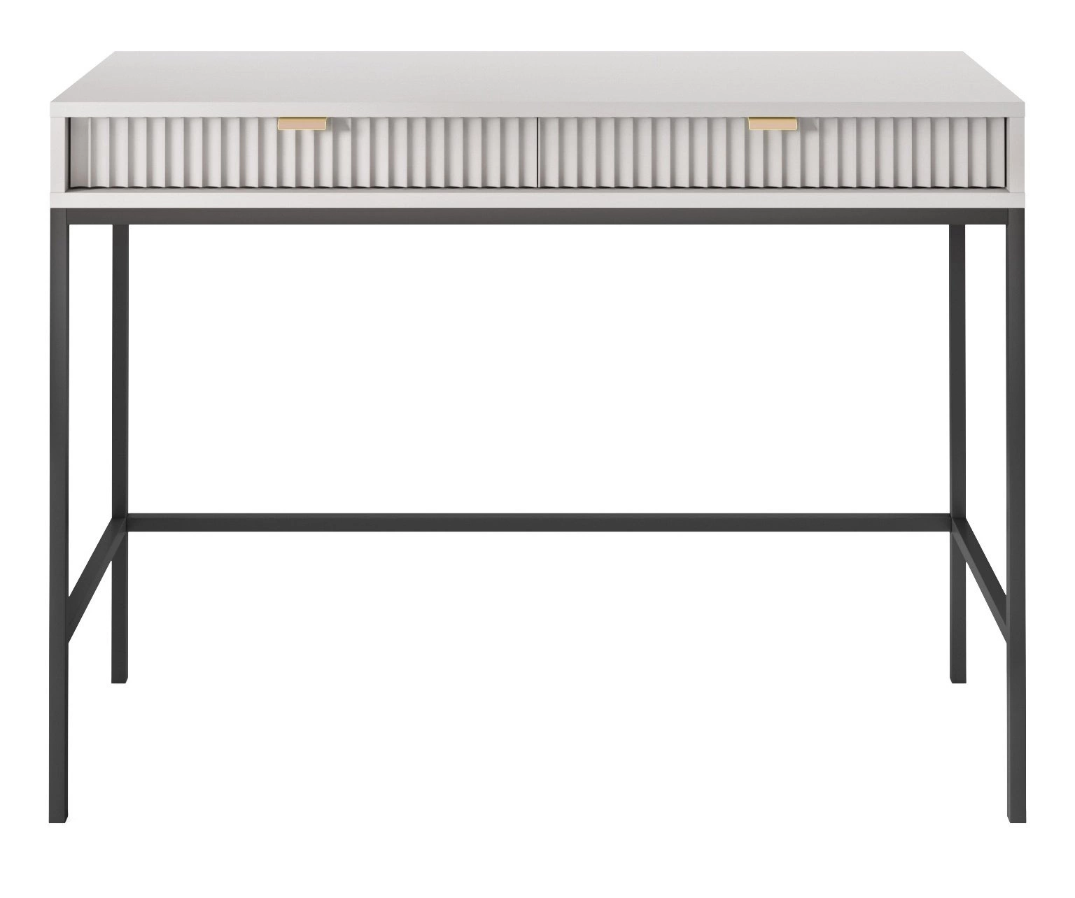 Poznaj toaletkę Delicious, która jest absolutnym must-have dla tych, którzy chcą przenieść styl swojego wnętrza na wyższy poziom! Nowoczesny i efektowny design toaletki z ryflowanymi frontami szuflad i stylowymi aluminiowymi uchwytami w złotym kolorze sprawi, że doda ona wyjątkowego uroku każdej przestrzeni. Duży rozmiar - 104 cm szerokości i 50 cm głębokości — zapewni mnóstwo miejsca do przechowywania różnych drobiazgów, od kluczy po ładowarki do telefonów czy kosmetyki. Ustawiona w przedpokoju lub salonie spełni funkcję subtelnej konsoli, natomiast w sypialni stanie się ulubionym miejscem każdej kobiety. Obszerny blat toaletki pozwoli ustawić na niej lustro, różnego typu organizery oraz eleganckie dekoracje.