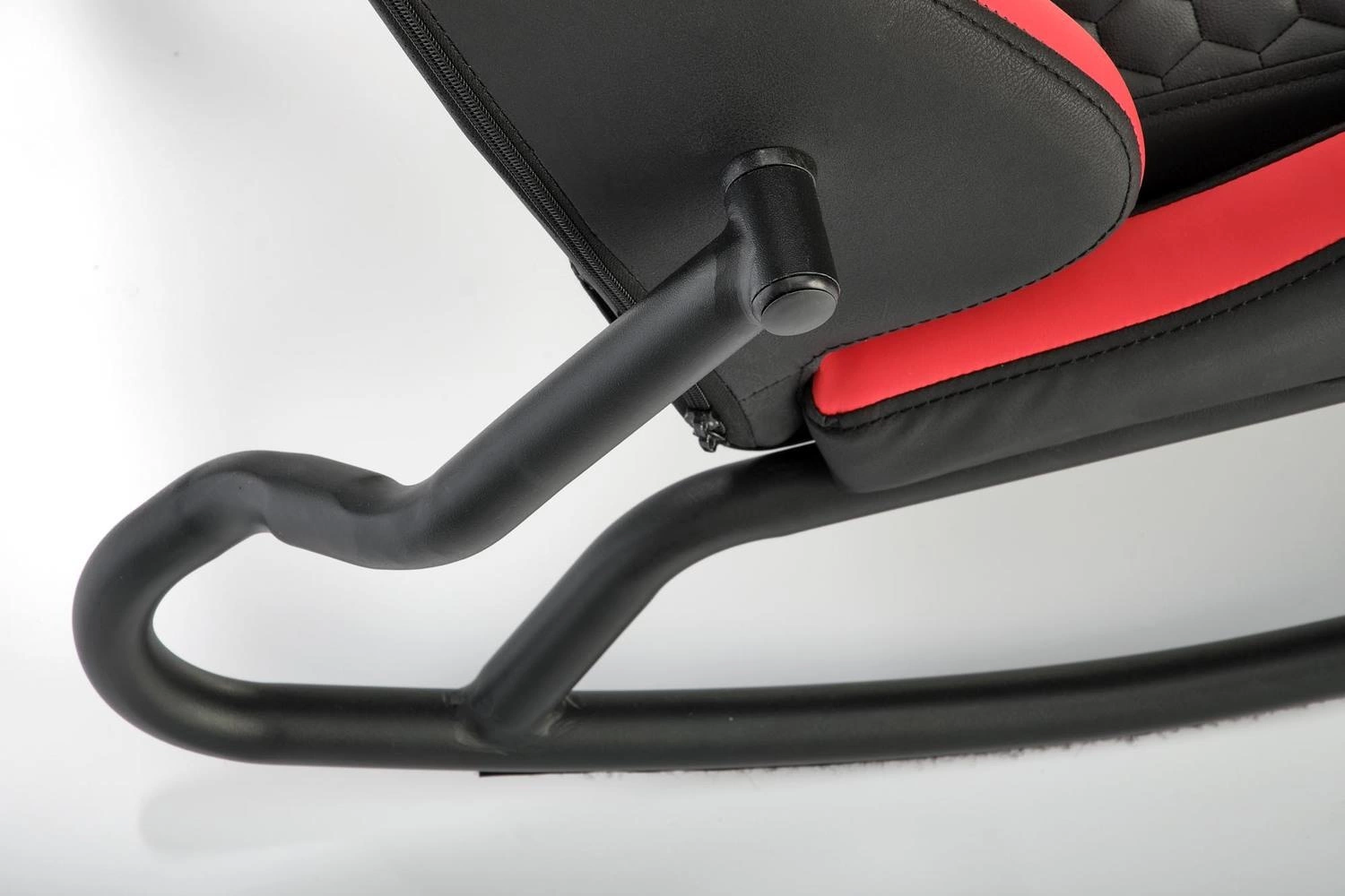 Nowoczesny fotel bujany Gamer Intesi został zaprojektowany z myślą o młodych graczach, którzy cenią sobie zarówno wygodę, jak i oryginalny styl. Konstrukcja na płozach pozwala na delikatne bujanie, co ułatwia relaks podczas przerw w grze lub nauce. Ergonomicznie wyprofilowane oparcie oraz sprężysta pianka tapicerska sprawiają, że nawet wielogodzinne maratony przed komputerem stają się mniej męczące, a ciało otrzymuje odpowiednie wsparcie.
