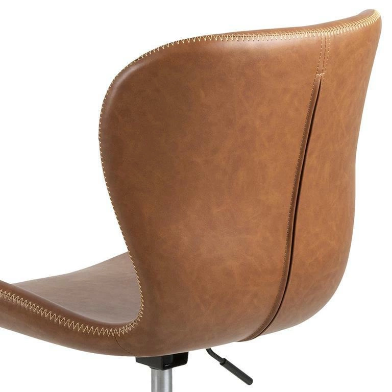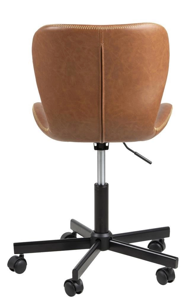 Fotel biurowy ergonomiczny Batilda marki Actona to nowoczesny fotel obrotowy do biurka, który wyróżnia się eleganckim wykończeniem z brązowej skóry ekologicznej i kompaktowymi wymiarami (szerokość 55 cm, głębokość 54 cm). Zaprojektowany z myślą o wygodzie podczas długiej pracy, posiada regulację wysokości siedziska oraz stabilną, czarną podstawę na kółkach. Połączenie nowoczesnego stylu z funkcjonalnością sprawia, że ten wygodny fotel biurowy doskonale sprawdzi się zarówno w domowym gabinecie, jak i w pokoju młodzieżowym.