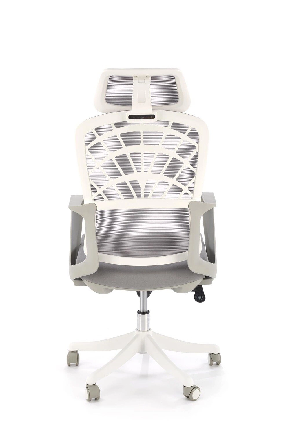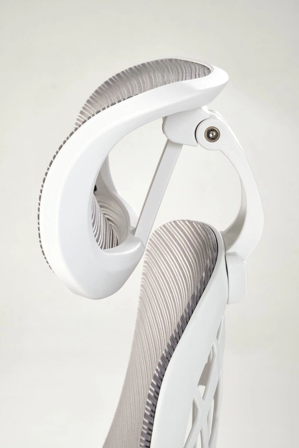 Fotel biurowy Belm w kolorze popielatym z białymi akcentami to idealne połączenie elegancji i funkcjonalności. Jego wymiary wynoszą 59 cm szerokości, 59 cm głębokości, oraz 115-121 cm wysokości, z możliwością regulacji wysokości siedziska od 45 do 51 cm. Dzięki mechanizmowi TILT, fotel umożliwia regulację nachylenia oparcia, co pozwala na dostosowanie pozycji siedzenia do indywidualnych potrzeb użytkownika. Dodatkowym atutem jest regulowany zagłówek, który zapewnia wsparcie dla szyi i głowy, co jest szczególnie ważne podczas długotrwałego siedzenia.