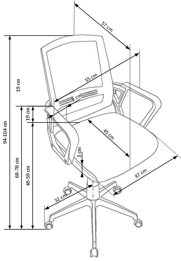 Ten fotel biurowy ergonomiczny wyposażony jest w funkcję regulacji kąta odchylenia, co pozwala na odpoczynek w trakcie intensywnej pracy lub nauki. Wysokość siedziska (59 cm) umożliwia swobodne dopasowanie do różnych biurek, a miękkie, stałe podłokietniki zapewniają wygodne podparcie dla ramion. Fotel obrotowy pozwala łatwo sięgać po potrzebne rzeczy bez wstawania, a przemyślana konstrukcja umożliwia płynne przemieszczanie się po pomieszczeniu.