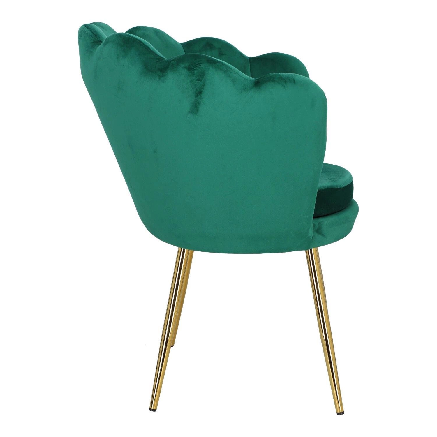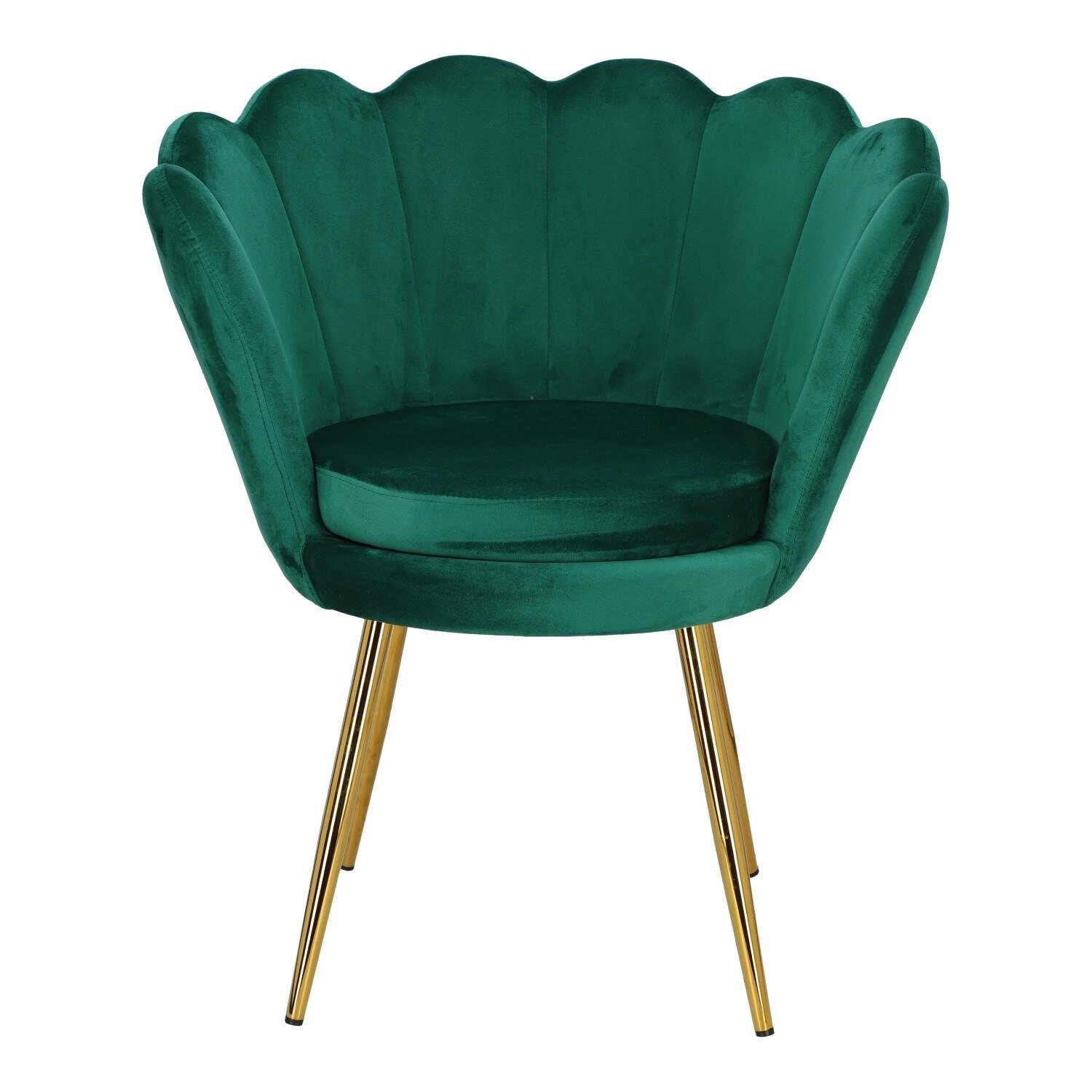 Krzesło Fiona w welwetowej tkaninie zachwyca swoim kształtem. Nawiązanie do muszelki widzimy przede wszystkim w oparciu mebla. Podstawą fotela są cztery smukłe nogi pomalowane na kolor złoty. Wyglądają one schludnie i luksusowo. Zaletą Fiony są podłokietniki, na których możesz swobodnie oprzeć ręce. Siedzisko krzesła zostało zrobione z grubej poduszki wypełnionej pianką tapicerską. Ten materiał wykazuje się niesamowitą elastycznością, przez co nie ulega odkształceniom. Meble wykonane z pianki tapicerskiej są niezwykle wygodne i miękkie. Krzesło Fiona zapewni ci bardzo komfortowy spoczynek. Produkt występuje w wielu wersjach kolorystycznych.