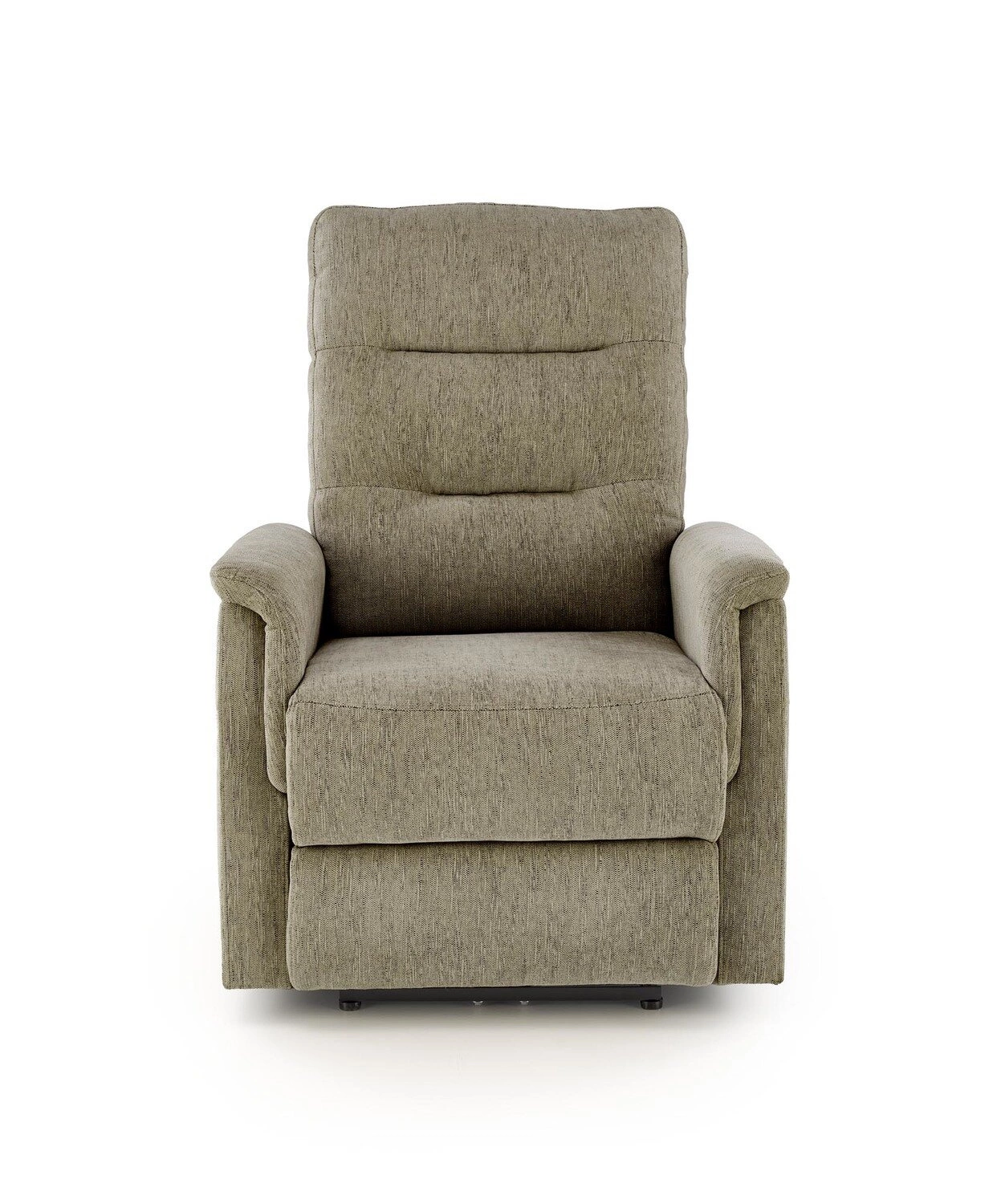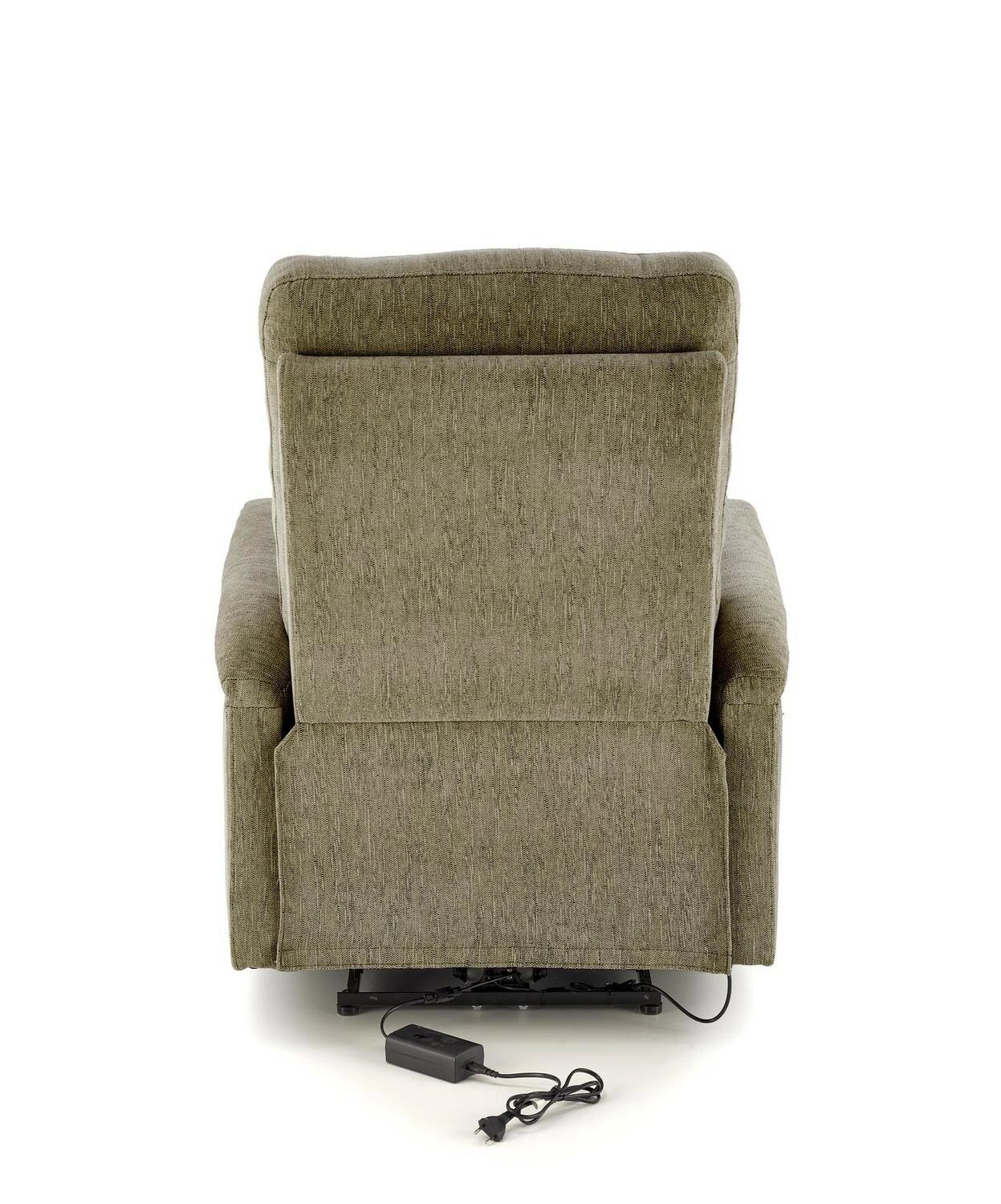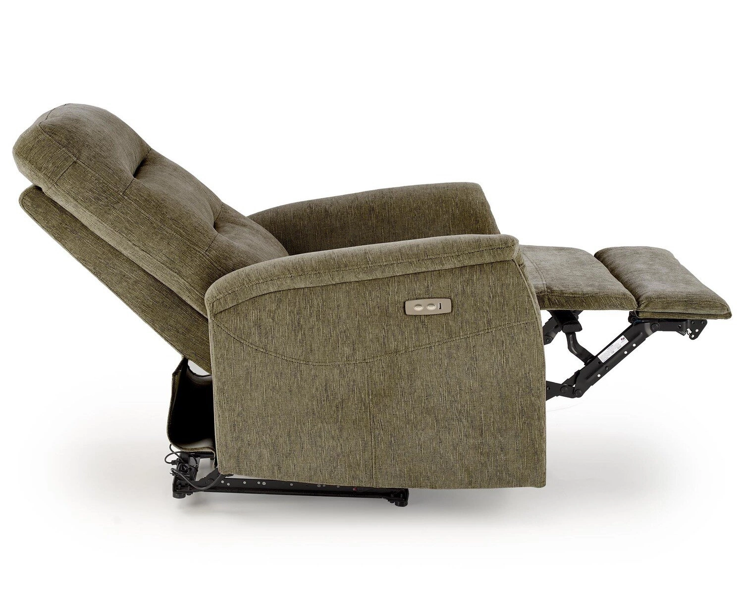 Fotel wypoczynkowy Tiala marki Intesi to połączenie nowoczesnej elegancji i maksymalnej wygody. Pokryty matową, przyjemną w dotyku tkaniną w głębokim oliwkowym kolorze, wyposażony w elektryczną funkcję rozkładania, podnóżek oraz port USB-A, zapewnia wyjątkowe miejsce do relaksu w salonie lub sypialni. Imponująca głębokość 160 cm po rozłożeniu oraz szerokie siedzisko (80 cm) gwarantują komfort zarówno podczas popołudniowego odpoczynku, jak i wieczornego seansu filmowego.