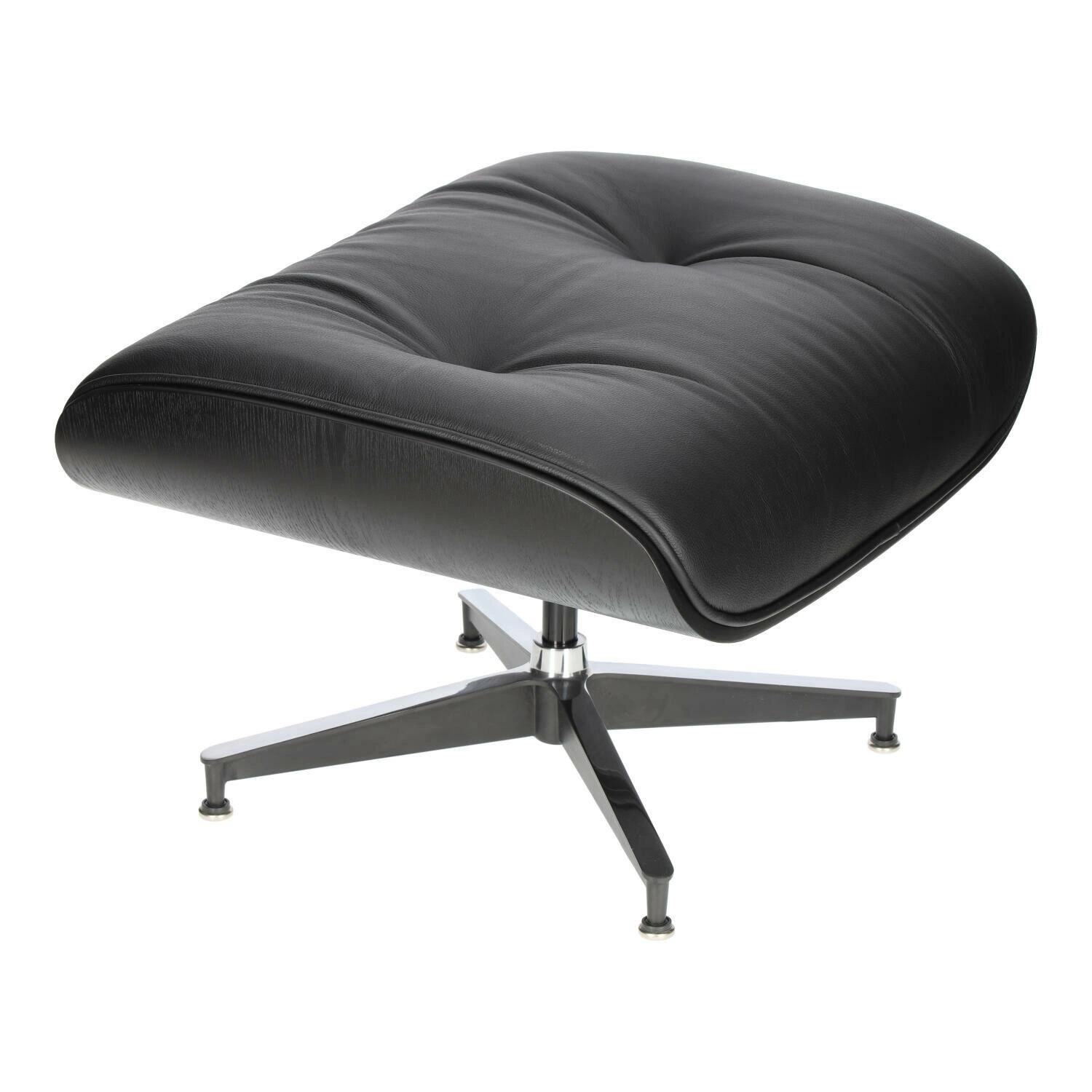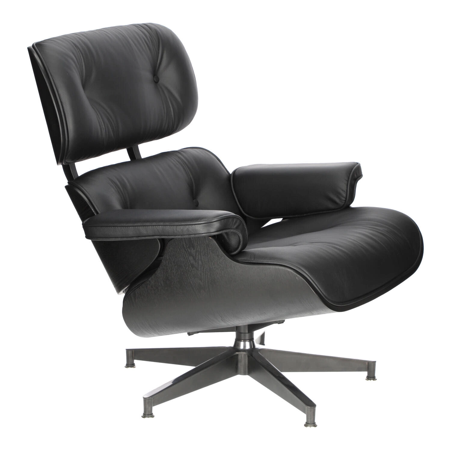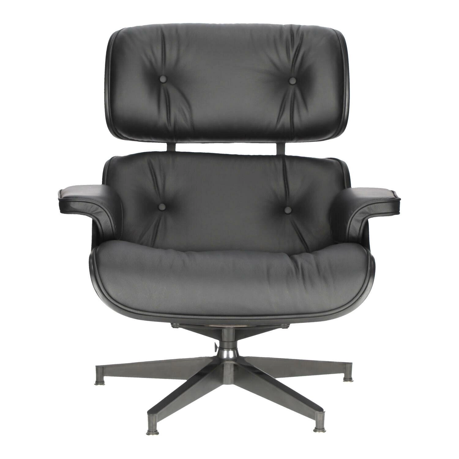 Siedzisko i oparcie zostały tapicerowane miękką, wysokiej jakości skórą naturalną, zapewniając przyjemne doznania podczas siedzenia. Fotel wyposażony jest w obrotową bazę wykonaną z aluminium, dostępną w dwóch wariantach. Pierwsza wersja posiada boki i spód nóg lakierowane na czarno, natomiast wierzch jest polerowany. Jest to częstszy wybór dla ciemnych odcieni skóry. Druga wersja bazy charakteryzuje się całkowitym polerowaniem i zazwyczaj występuje z białą skórą, co nadaje fotelowi subtelny, nowoczesny wygląd.