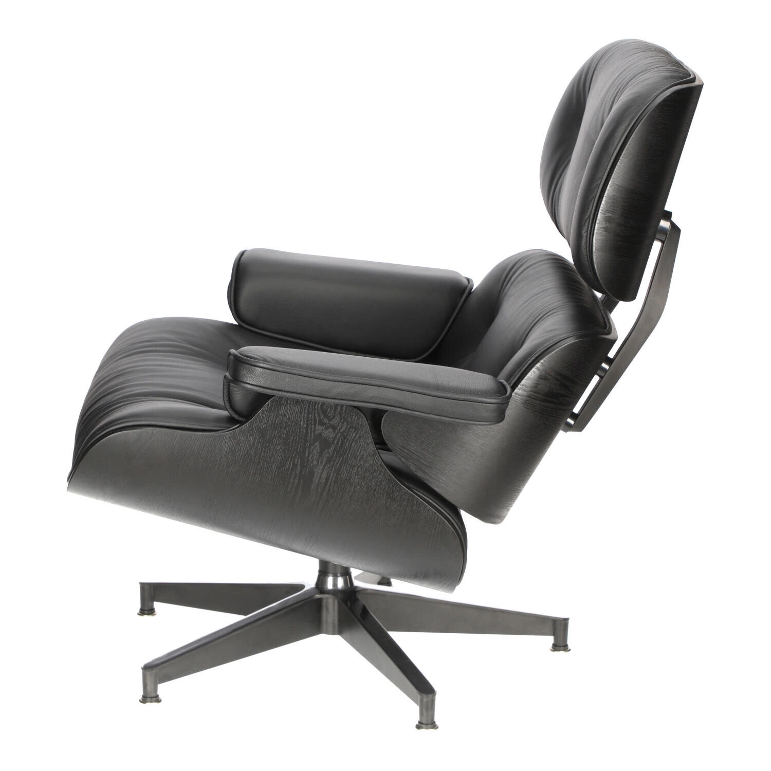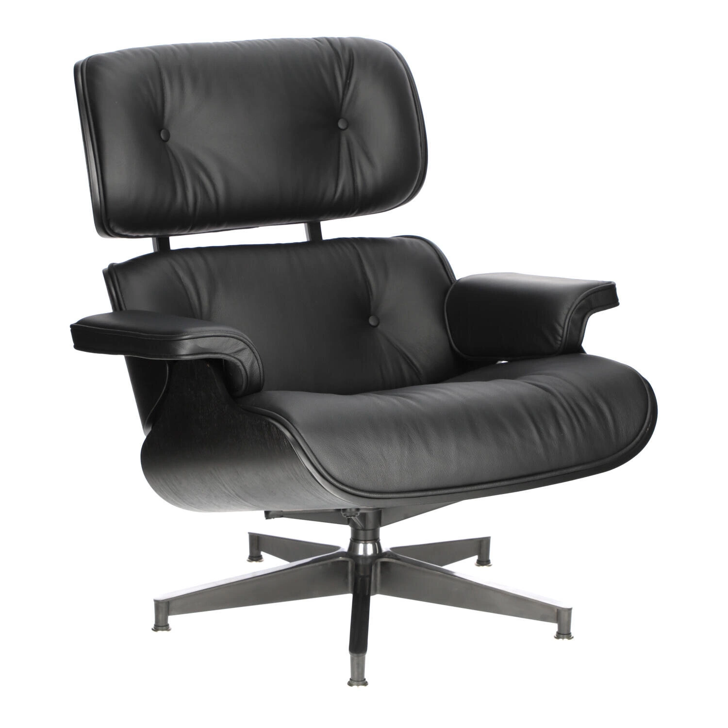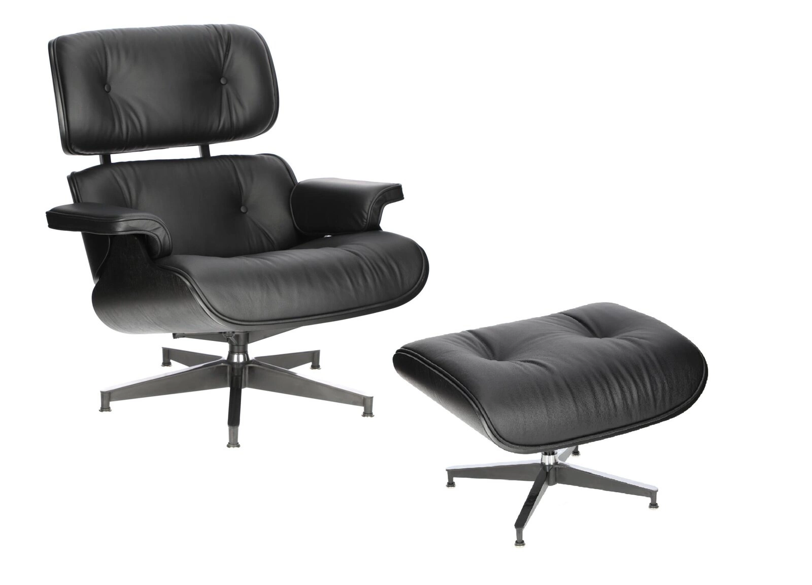 Siedzisko i oparcie zostały tapicerowane miękką, wysokiej jakości skórą naturalną, zapewniając przyjemne doznania podczas siedzenia. Fotel wyposażony jest w obrotową bazę wykonaną z aluminium, dostępną w dwóch wariantach. Pierwsza wersja posiada boki i spód nóg lakierowane na czarno, natomiast wierzch jest polerowany. Jest to częstszy wybór dla ciemnych odcieni skóry. Druga wersja bazy charakteryzuje się całkowitym polerowaniem i zazwyczaj występuje z białą skórą, co nadaje fotelowi subtelny, nowoczesny wygląd.