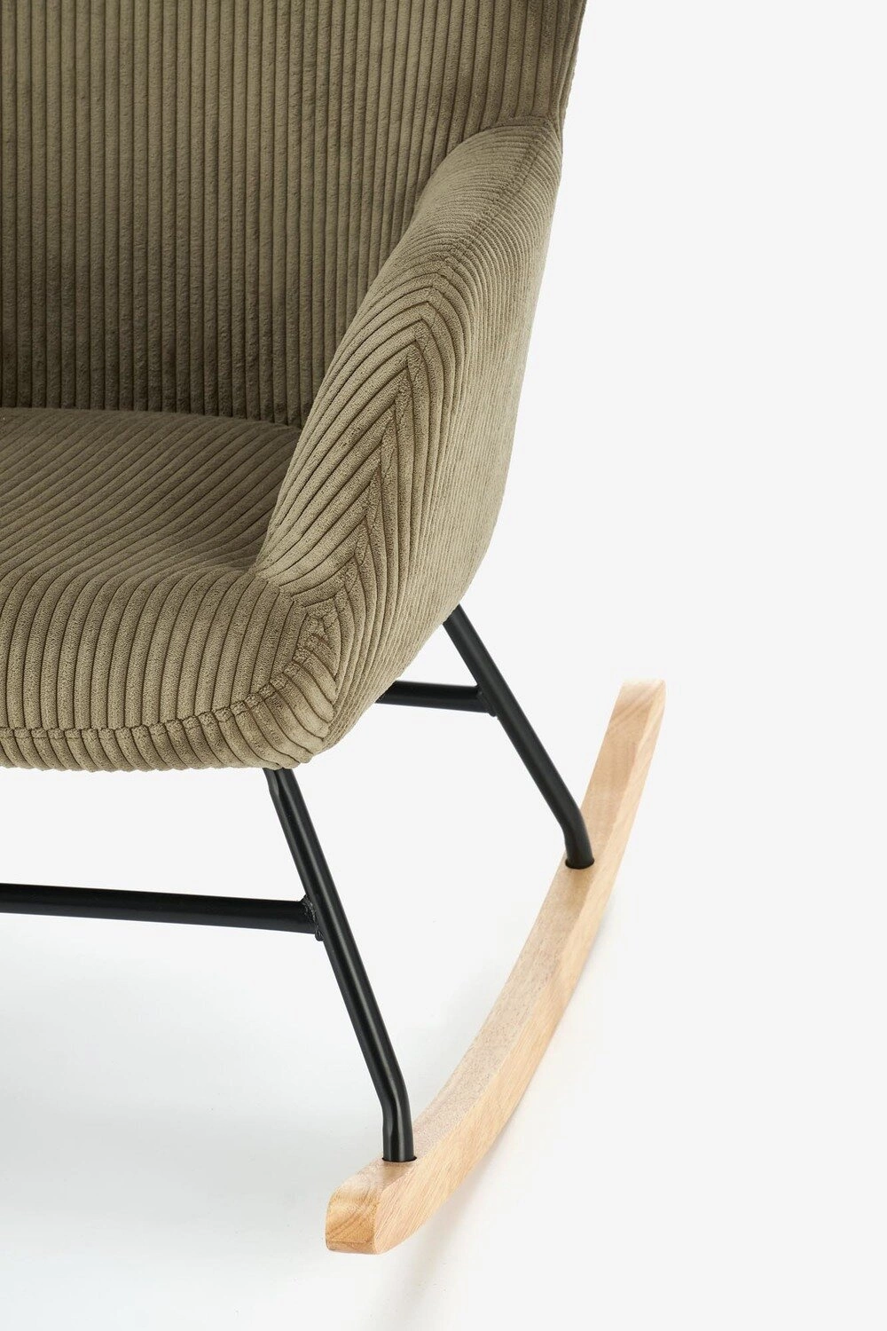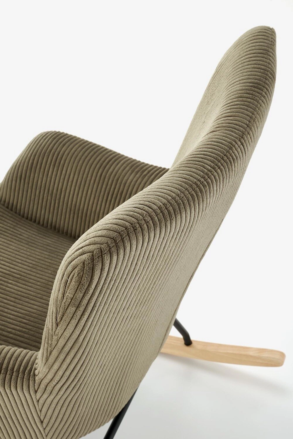 - Fotel wykonany z najwyższej jakości materiałów: stali malowanej proszkowo, litego drewna oraz tkaniny sztruksowej