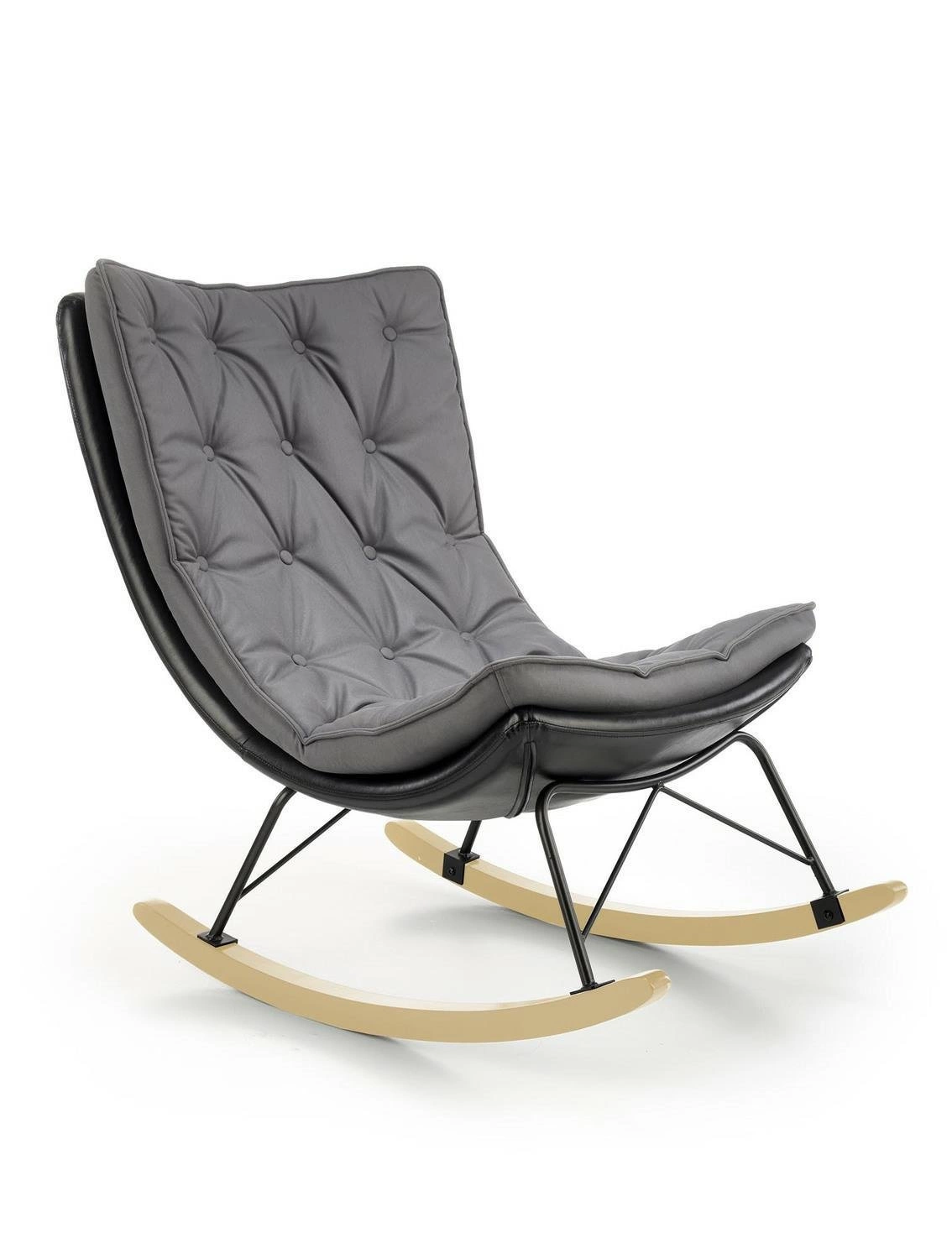 Prostota formy i szlachetne materiały sprawiają, że fotel Digro doskonale wpisuje się w modne, minimalistyczne aranżacje. Szara tapicerka subtelnie podkreśla elegancję wnętrza, a naturalne drewno biegunów dodaje meblowi ciepła i przytulności. Brak podłokietników zapewnia swobodę ruchów oraz pozwala dopasować fotel do różnych przestrzeni – zarówno w salonie, sypialni, jak i nowoczesnym gabinecie.