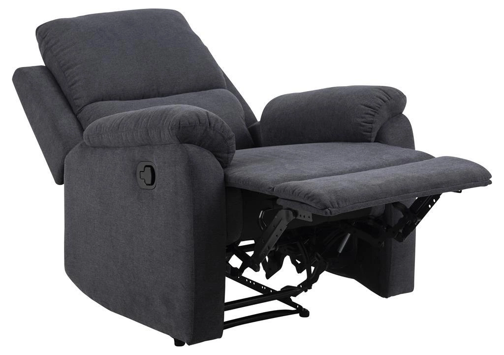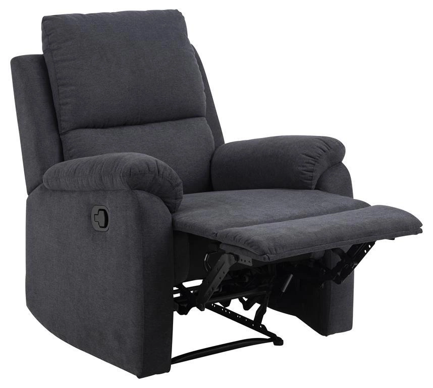 Wypełnienie fotelu Sabia stanowią elastyczne sprężyny i gęsta pianka poliuretanowa, która zapewnia niezwykłą wygodę. Twoje ciało dopasuje się do mebla. Zaletą wykorzystania tego tworzywa jest także fakt, iż powraca on do swojej pierwotnej formy i nie odgniata się, dzięki temu fotel to gwarancja długowieczności. Pokryty został tkaniną Enjoy farbic dark grey 24. Fotel można rozłożyć, jak również regulować kąt jego odchylenia. Zalety tego modelu to także wyjątkowo komfortowe oparcie i ergonomiczne podłokietniki. Dobierz do kompletu sofę Sabia i stwórz strefę relaxu w swoim salonie.