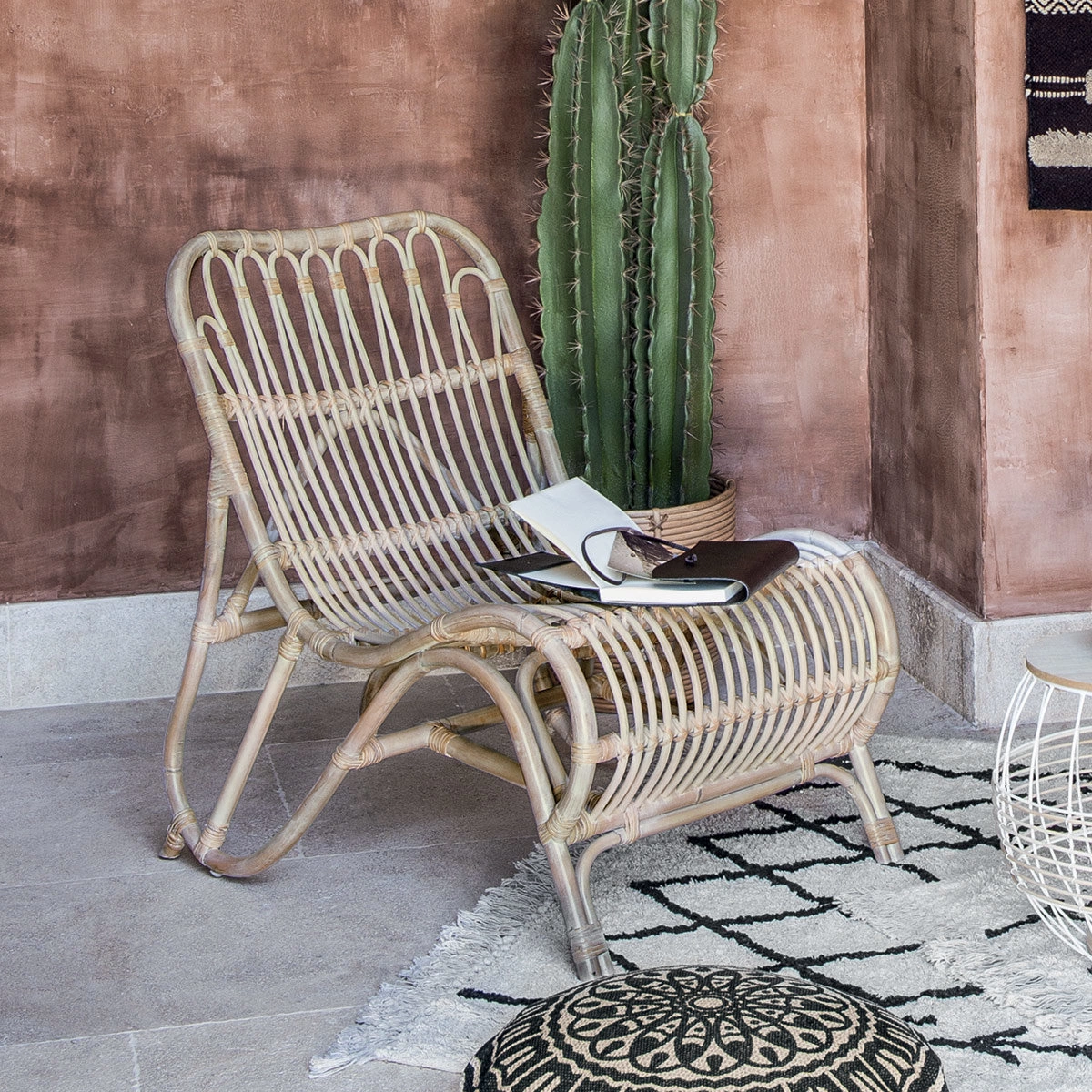Najlepsza cenaOstatnie sztukiFotel rattanowy Neta boho do salonu z podłokietnikami i poduszką Atmosphera naturalny
