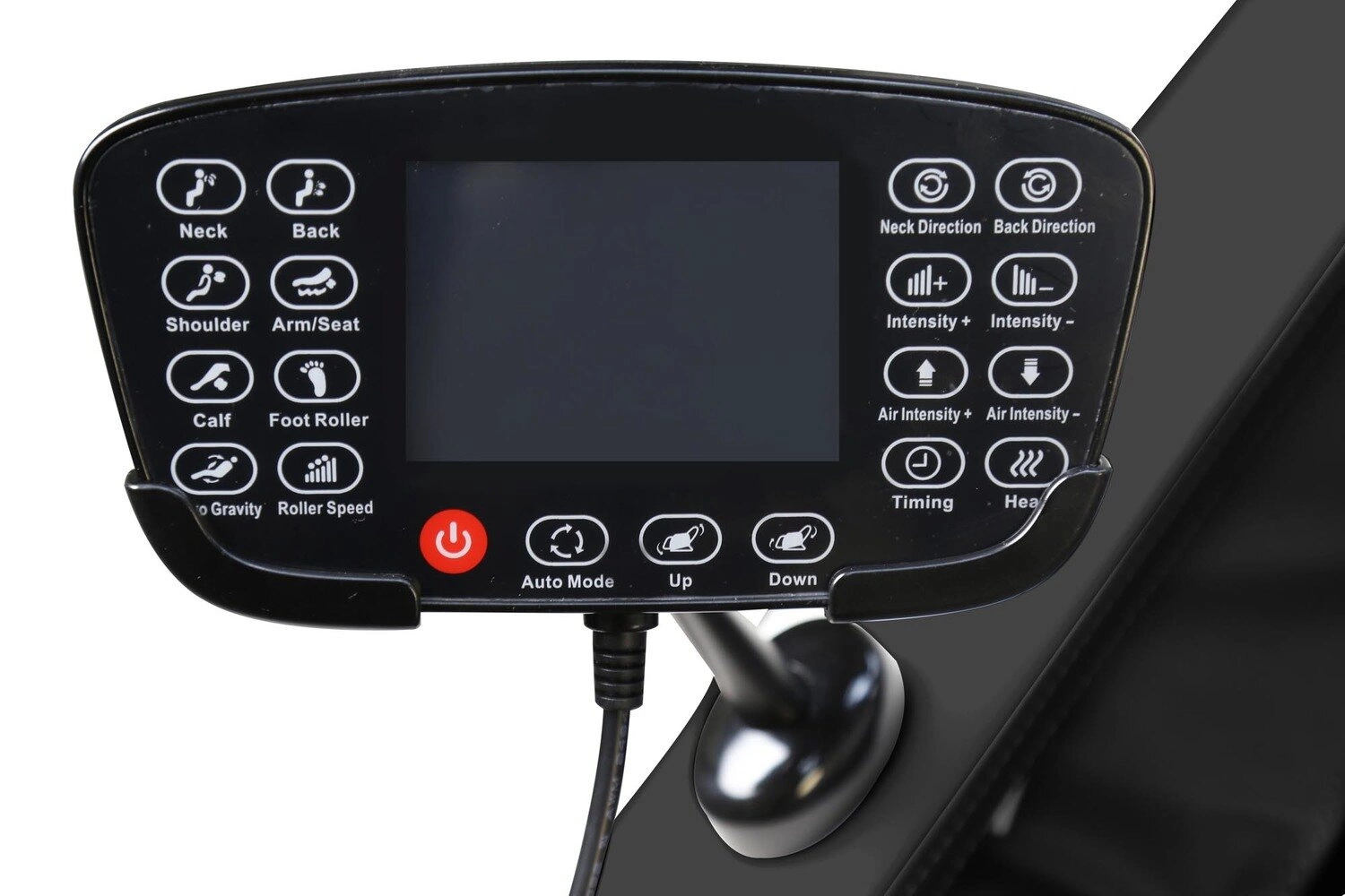 - Fotel posiada wbudowane głośniki oraz ekran dotykowy, które umożliwiają wygodne sterowanie wszystkimi funkcjami