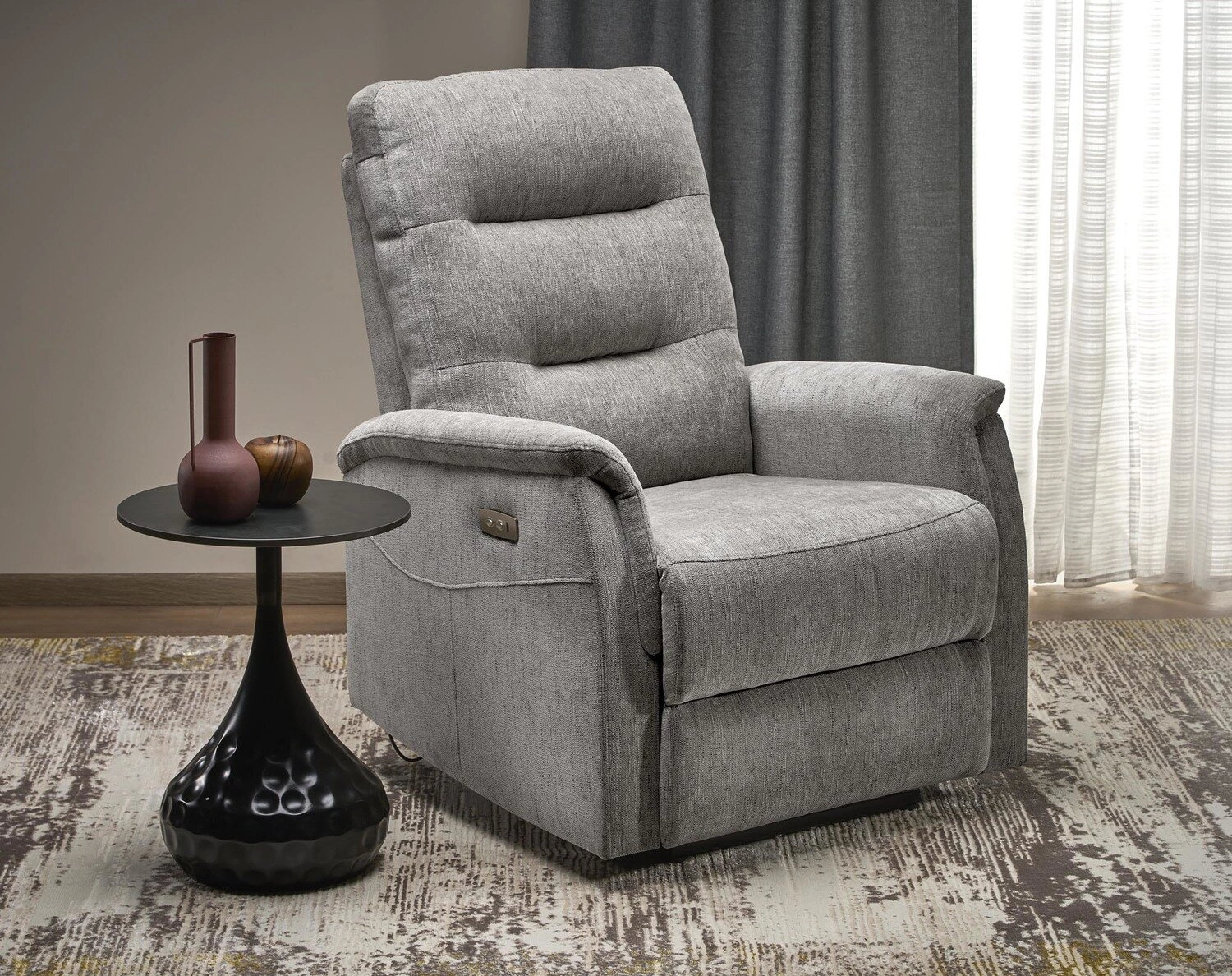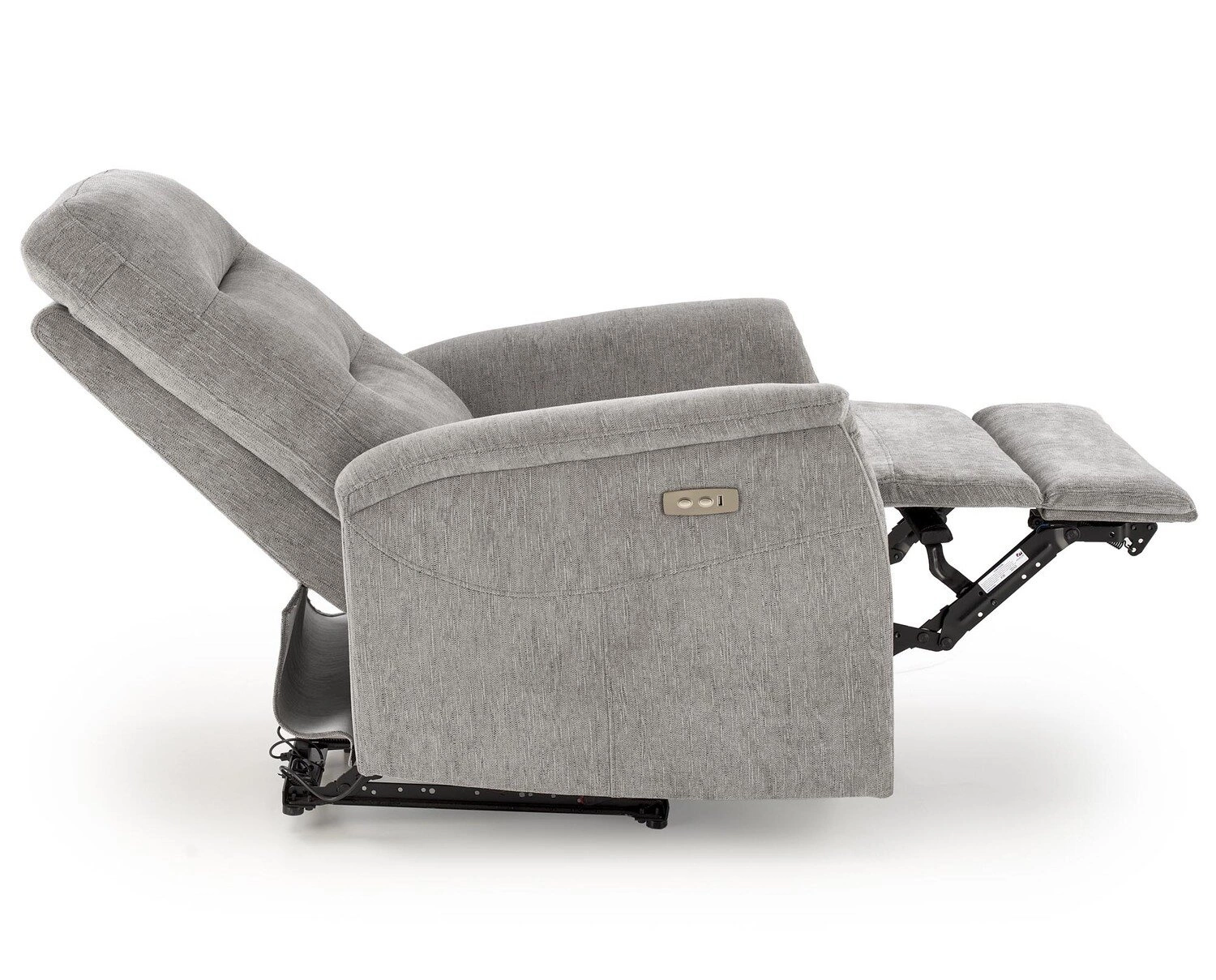 Fotel wypoczynkowy Tiala z podnóżkiem marki Intesi to połączenie nowoczesnego wzornictwa, wygody i innowacyjnej funkcjonalności. Wykonany z matowej tkaniny Odin w szarym, popielatym odcieniu, wyposażony w elektryczną funkcję rozkładania oraz port USB-A, stanowi idealne rozwiązanie do salonu lub sypialni. Z szerokością 80 cm, głębokością aż 160 cm oraz wygodnym podnóżkiem, fotel Tiala został zaprojektowany z myślą o maksymalnym relaksie po długim dniu.
