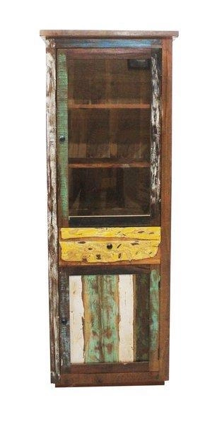 Meble wykonane ze starego drewna z odzysku mają niesamowitą moc i nieoczywisty urok. Niezwykle stylowa witryna z szafką i szufladą sprawdzi się w jadalni bądź kuchni urządzonych w starodawnym klimacie. Obok tego mebla nie da się przejść obojętnie.
