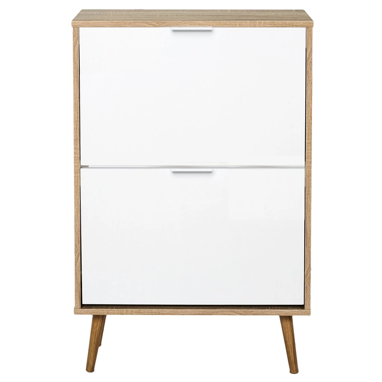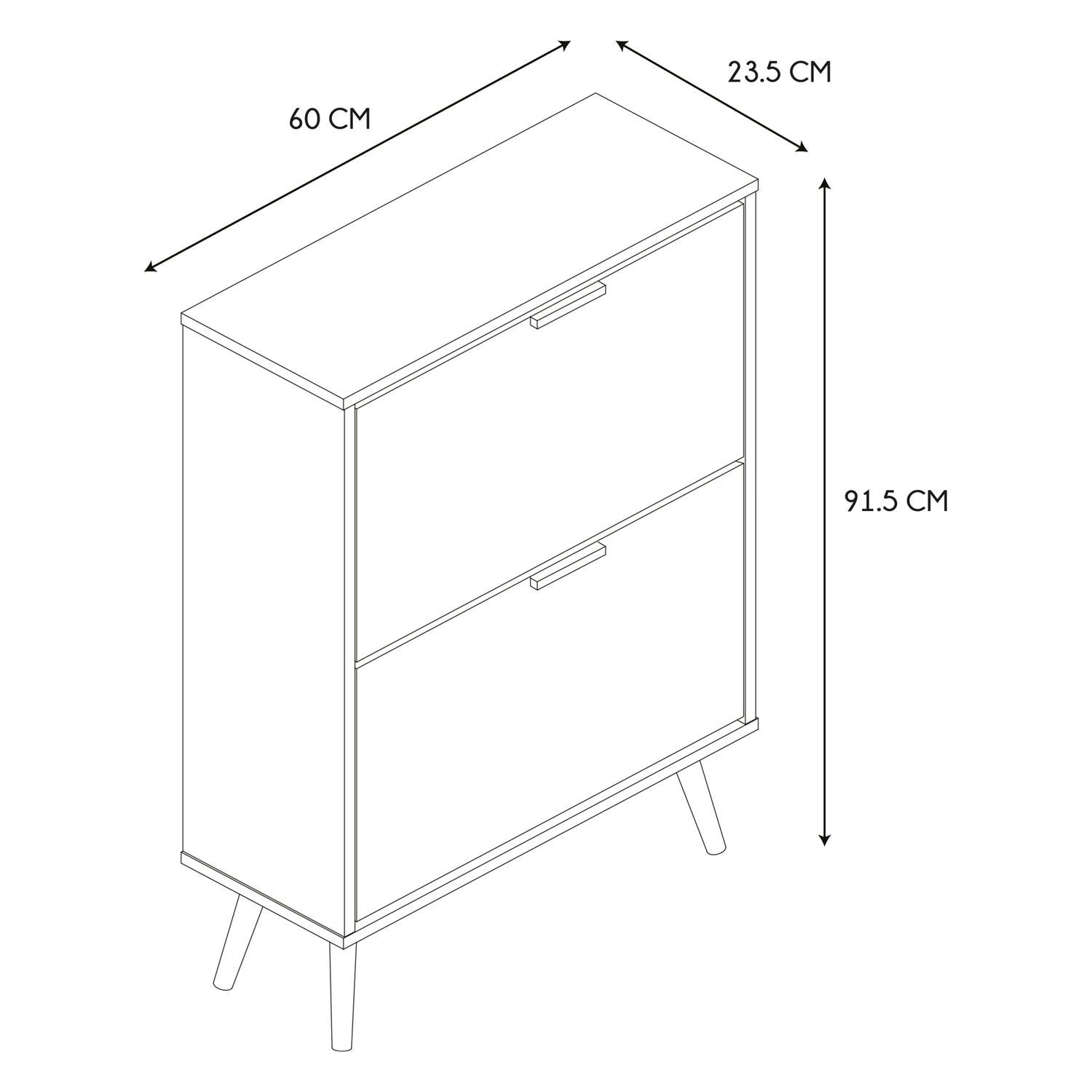 Idealna szafka na buty powinna łączyć w sobie elegancki design z funkcjonalną formą. Sabana to wyjątkowe połączenie tych dwóch cech ujęte w modnym stylu skandynawskim. Jest to dwudrzwiowy mebel, który pomoże w uporządkowaniu obuwia i zaoszczędzeniu miejsca na podłodze. Płytka szafka na buty ma głębokość 23,5 cm, dzięki czemu nada się idealnie do wąskiego korytarza, kawalerki i małego przedpokoju. Posiada ona dwa fronty, które się uchylają przy pomocy poziomych minimalistycznych uchwytów. W jej wnętrzu znajdują się zamontowane półki na różnego rodzaju buty, które dają możliwość wygodnego przechowywania. Szafka Sabana wykonana jest z płyty MDF, która jest przede wszystkim odporna na intensywne użytkowanie. Powierzchnia wykończona okleiną drewnianą oraz białym laminatem nie tylko pięknie wygląda, ale i jest łatwa w czyszczeniu. Biała szafka na buty to idealny mebel do jasnej kawalerki lub wnętrza w stylu skandynawskim. Wysokość nóżek 16 cm