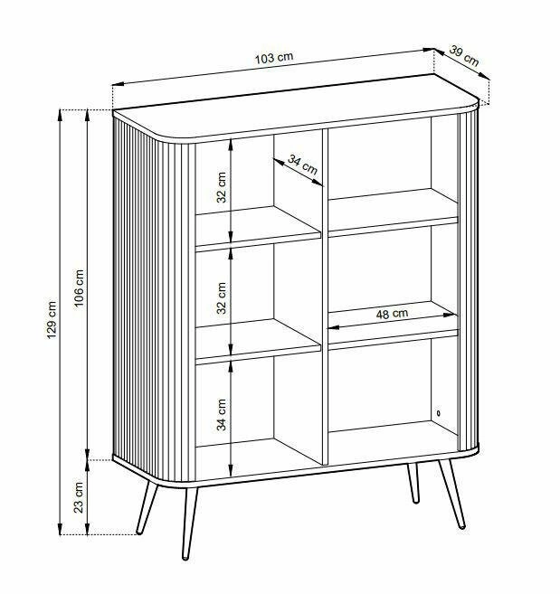 Dzięki sześciu przestronnym półkom z łatwością zorganizujesz codzienne drobiazgi, dokumenty, tekstylia czy dekoracje. Szerokość 129 cm zapewnia dużą powierzchnię do przechowywania, a wysokość 103 cm pozwala wykorzystać ścianę nawet w mniejszych pokojach. Zastosowanie wysokich, metalowych nóg nie tylko dodaje lekkości, ale też umożliwia łatwe sprzątanie pod meblem – bez problemu wjedzie tam większość robotów sprzątających. Komoda Seda sprawdzi się zarówno jako komoda do salonu na książki i ozdoby, jak i funkcjonalna komoda do sypialni lub jadalni.
