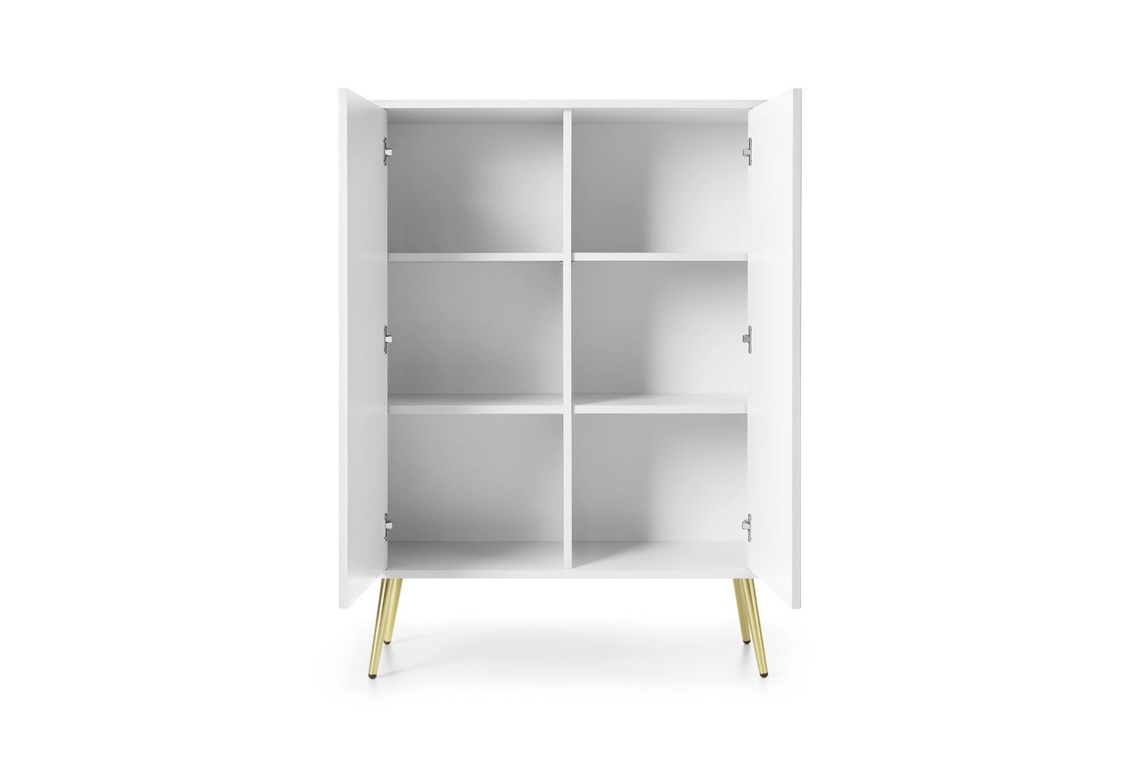 - Nowoczesny design – komoda biała na złotych nogach doskonale wpisuje się w trendy aranżacyjne