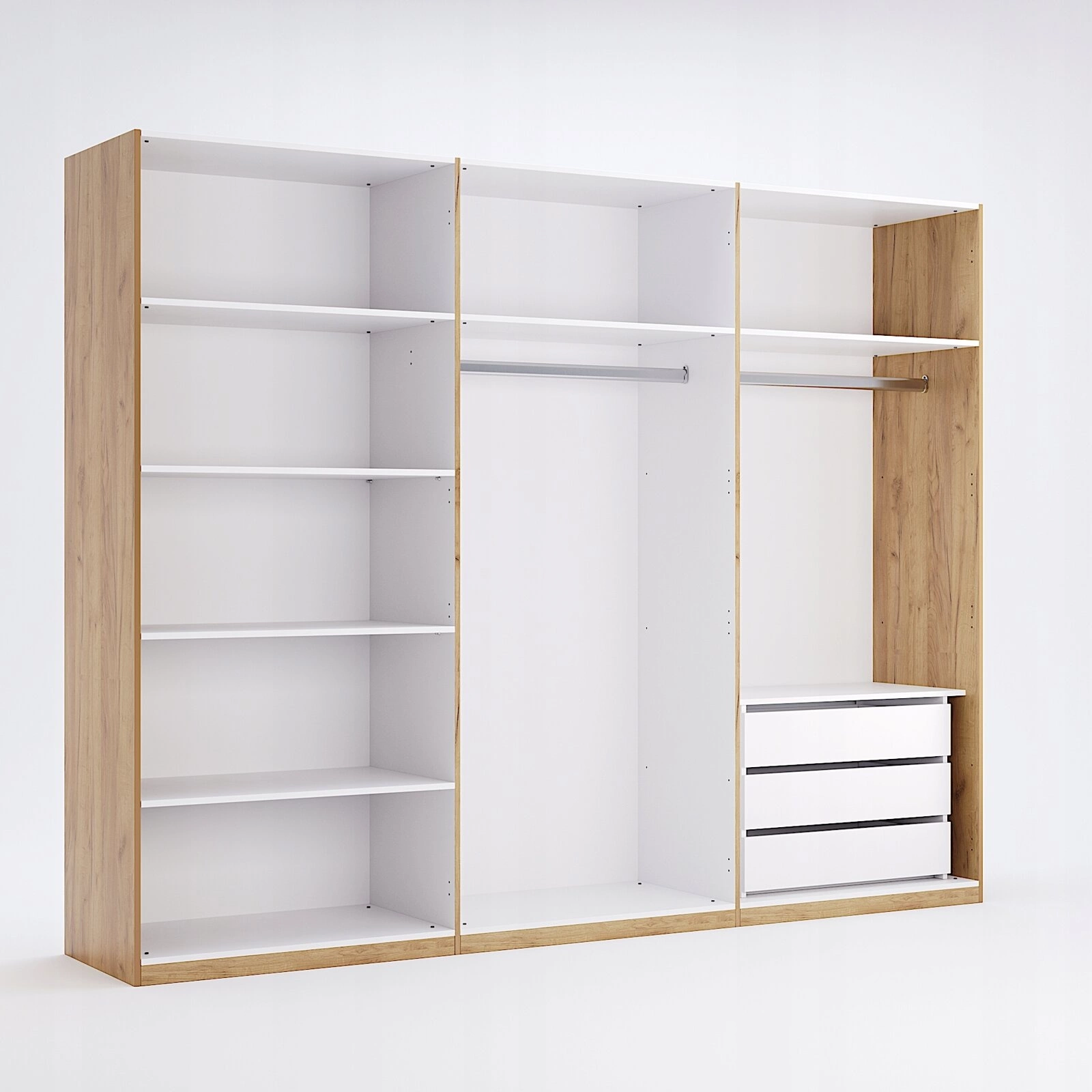 - Trzy pojemne szuflady – łatwo posegregujesz ubrania, bieliznę lub akcesoria, utrzymując porządek na co dzień
