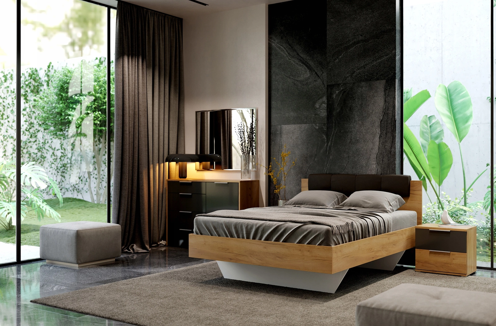- Nowoczesny design w kolorystyce dąb craft i szary – harmonijnie wpisuje się w modne aranżacje salonów i sypialni