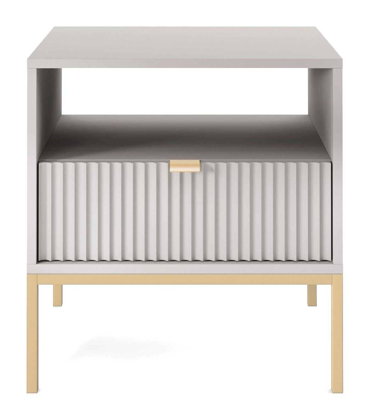 Elementem zestawu do sypialni Delicious jest między innymi szafka nocna. Ryflowany front nadaje szafce nocnej niezwykłego uroku, tworząc jednocześnie subtelną strukturę, która przyciąga uwagę w każdej sypialni. Szafka nocna oferuje odpowiednią ilość miejsca do przechowywania przedmiotów, które chcesz mieć zawsze pod ręką, a także miejsce do ustawienia lampki nocnej. Dzięki temu będzie niezastąpionym meblem, który pokochasz nie tylko ze względu na piękny wygląd, ale i funkcjonalność.