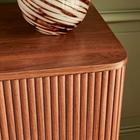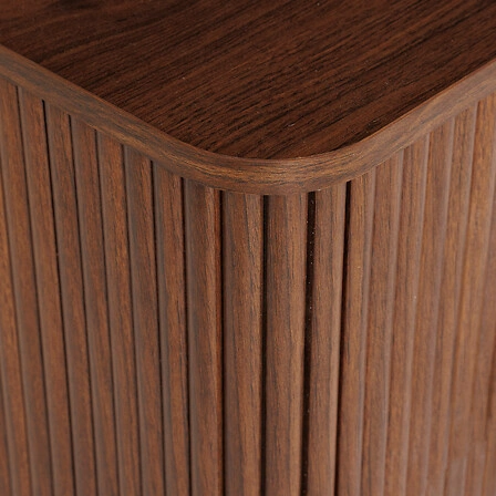 Komoda Wany łączy minimalistyczną bryłę z subtelną ozdobą w postaci pionowych frezowań na frontach. Brązowy kolor podkreśla naturalny charakter mebla, harmonizując z jasnymi i ciemniejszymi aranżacjami. Styl japandi, będący połączeniem skandynawskiego funkcjonalizmu i japońskiej estetyki, sprawia, że komoda doskonale uzupełni przestrzenie urządzone w duchu prostoty i równowagi. Półmatowe wykończenie nadaje całości szlachetnego wyglądu oraz zabezpiecza powierzchnię przed codziennym użytkowaniem.