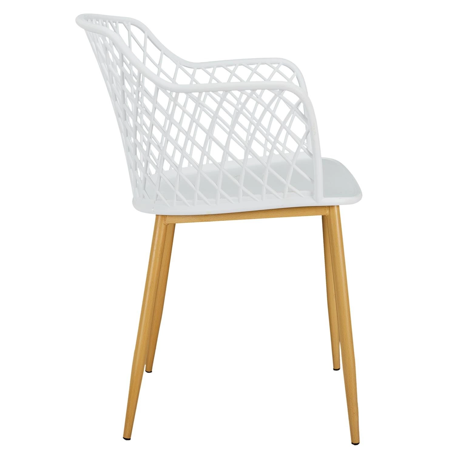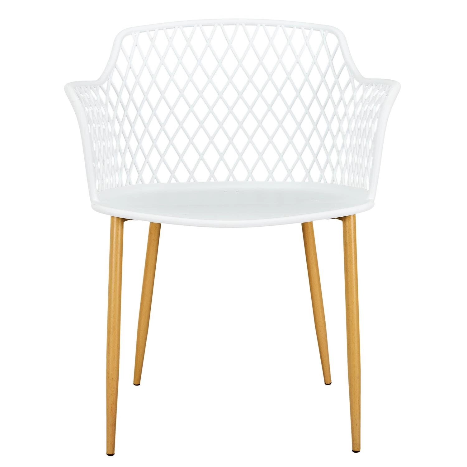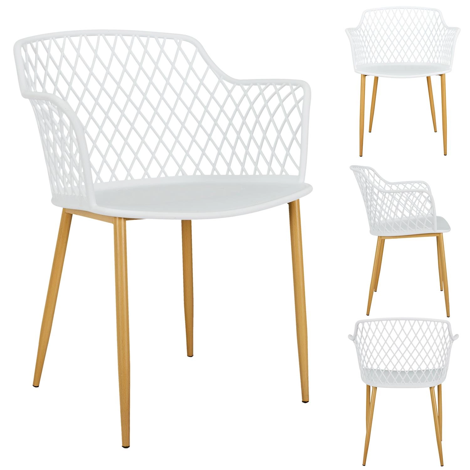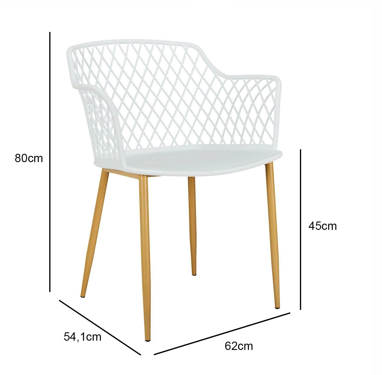 Siedzisko krzesła wykonane jest z trwałego tworzywa sztucznego, które imituje plecionkę. Dzięki temu krzesło jest nie tylko wygodne, ale również estetyczne. Dodatkowo, metalowe nogi krzesła zostały oklejone okleiną przypominającą drewno, co nadaje mu naturalny wygląd. Dzięki temu krzesło Basel doskonale komponuje się z innymi elementami wystroju wnętrza.
