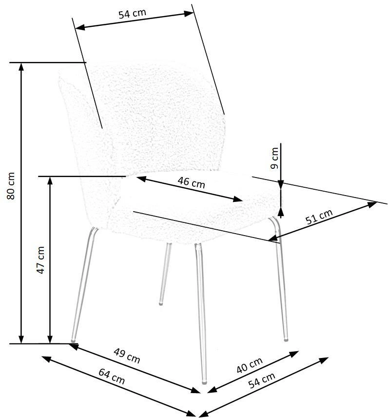 Krzesło Leonore boucle nie tylko zachwyca swoim wyglądem, ale także zapewnia wygodę i komfort. Dzięki starannie dobranym wymiarom - 54 cm szerokości, 64 cm głębokości, 80 cm wysokości i 47 cm wysokości siedziska - idealnie dopasowuje się do Twojego ciała, zapewniając optymalne wsparcie dla pleców i komfortową pozycję siedzenia. Materiał tkaniny bouclé, z którego wykonane jest krzesło, jest nie tylko miły w dotyku, ale także łatwy do utrzymania w czystości. Możesz cieszyć się jego pięknym wyglądem przez wiele lat, bez konieczności specjalnych zabiegów pielęgnacyjnych.
