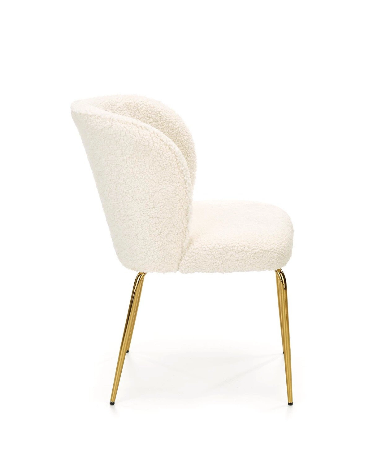 Krzesło Leonore boucle to eleganckie i stylowe rozwiązanie, które doda wyjątkowego charakteru do Twojego wnętrza. Wykonane z wysokiej jakości tkaniny bouclé w kremowym kolorze, to doskonały wybór dla osób poszukujących zarówno komfortu, jak i estetyki. Jego unikalny design jest podkreślony przez złote nogi, które nadają mu wyjątkowego blasku i elegancji. Stal chromowana, z której wykonane są nogi, zapewnia trwałość i stabilność, co gwarantuje długotrwałe użytkowanie.