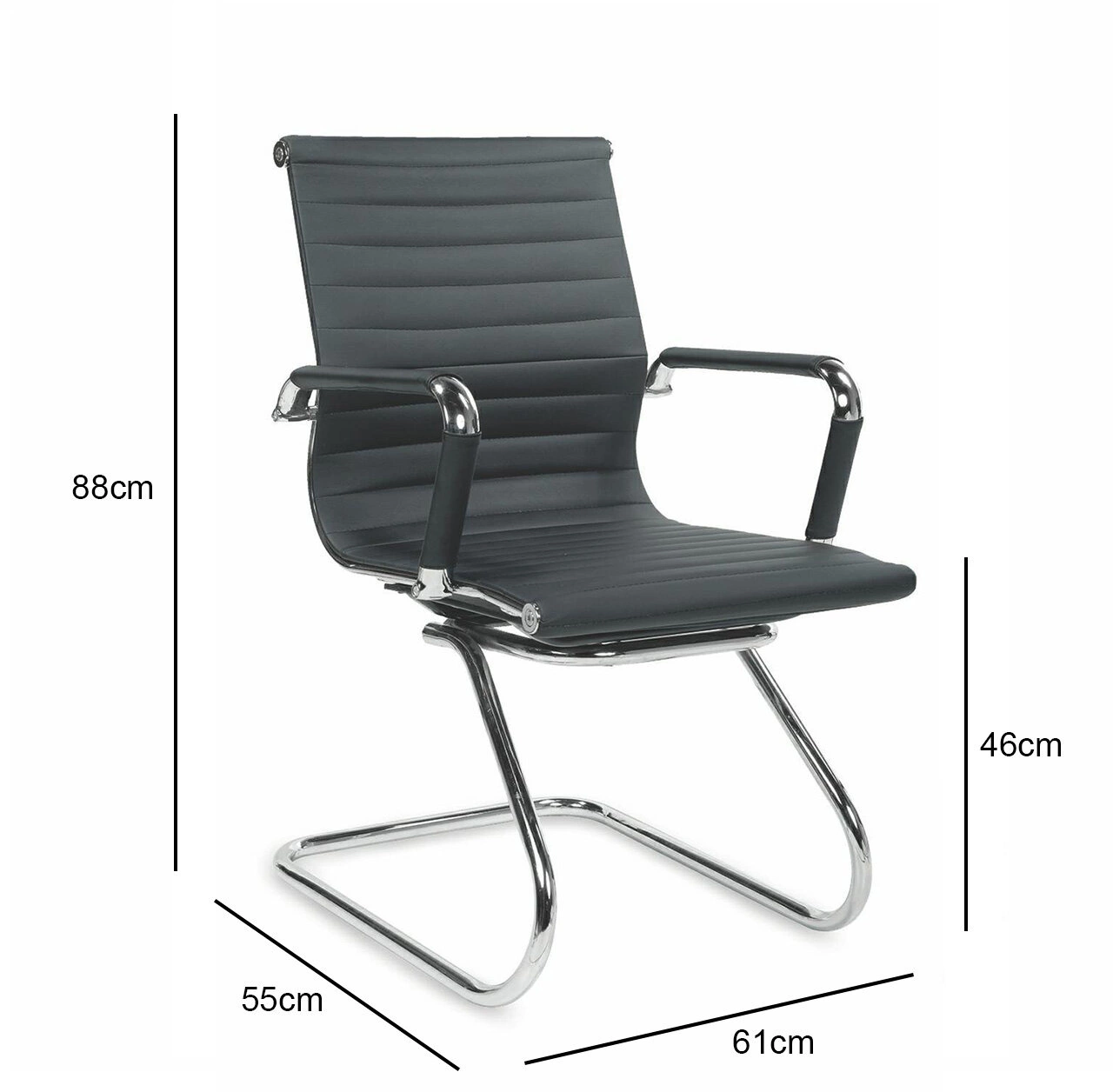 Tapicerowane krzesło biurowe Skid czarne | Intesi Ergonomiczne i stylowe krzesło biurowe Skid od Intesi. Nowoczesne krzesło biurowe posiada podstawę w formie płozy, nieregulowane podłokietniki i tapicerkę z ekoskóry, co dodaje elegancji w każdym pomieszczeniu. Maksymalne obciążenie wynosi 100 kg. Odmień swoją przestrzeń pracy z pomocą krzesła biurowego Skid, nowoczesnego mebla codziennego użytku, stworzonego z myślą o wygodzie i stylu. Wykonany z wytrzymałej metalowej podstawy, solidny, ale lekki projekt zapewnia niezawodne wsparcie, aby wytrzymać rygory codziennego użytkowania. Ergonomiczne siedzisko i oparcie tapicerowane skórą ekologiczną w kolorze czarnym sprawiają, że krzesło biurowe prezentuje szykowne wyrafinowanie, które wzbogaci każdy gabinet. Fotel ma wysokość siedziska wynoszącą 46 cm, co zapewnia maksymalny komfort podczas całodziennej pracy przy biurku. Krzesło zostało zaprojektowane z myślą o maksymalnym obciążeniu wynoszącym 100 kg, dzięki czemu jest wystarczająco wytrzymałe, aby służyć przez wiele lat. Wykonane z myślą o minimalizmie i elegancji, krzesło biurowe Skid może być używane w każdym biurze, gabinecie lub pokoju młodzieżowym. O tym warto pamiętać! Wygodne oparcie i wytrzymała konstrukcja o maksymalnej wytrzymałości 100 kg Nowoczesny design z nieregulowanymi podłokietnikami zapewnia elegancki i opływowy wygląd Tapicerka z ekoskóry zapewnia stylowy i wyrafinowany wygląd Wytrzymała metalowa podstawa zapewnia długotrwałą stabilność i wytrzymałość Lekka i łatwa konstrukcja do przenoszenia dla optymalnej wygody