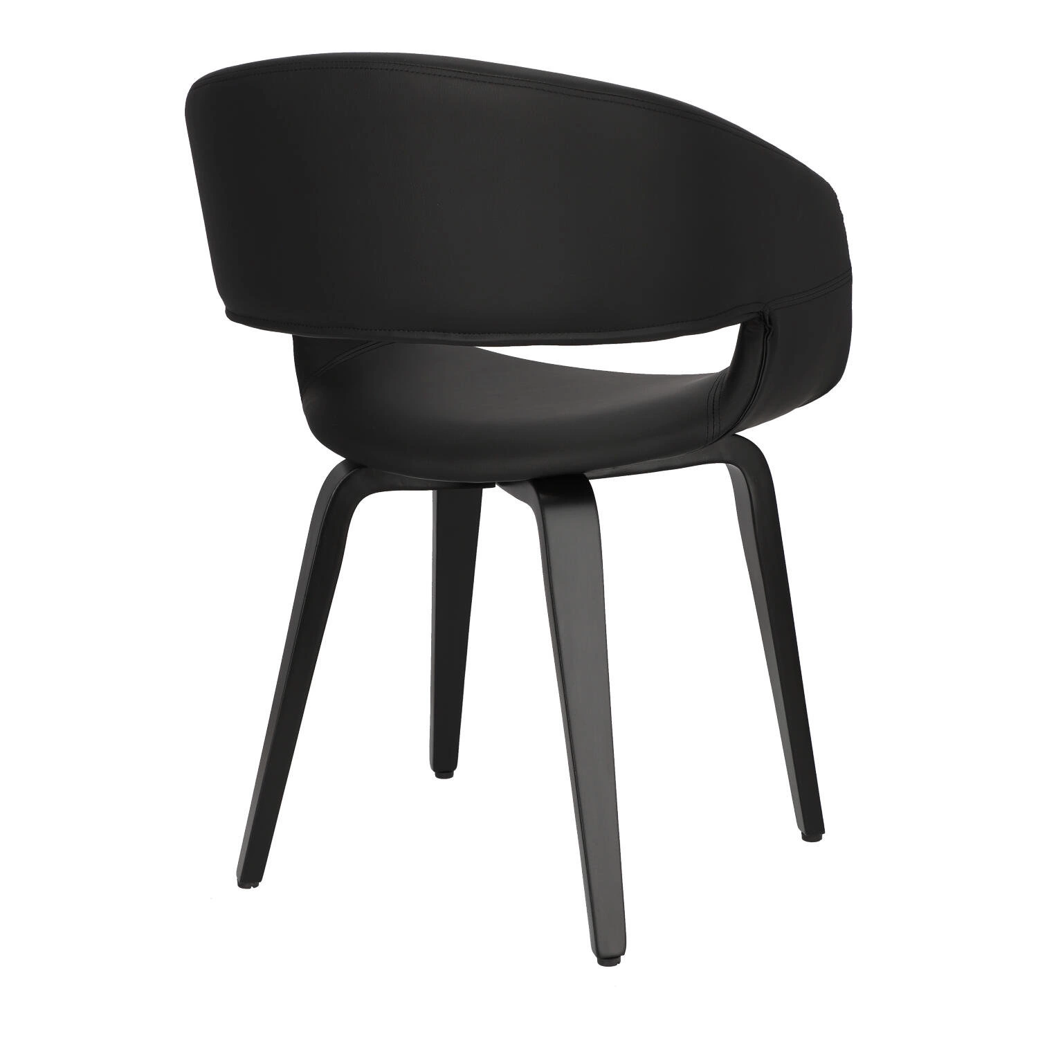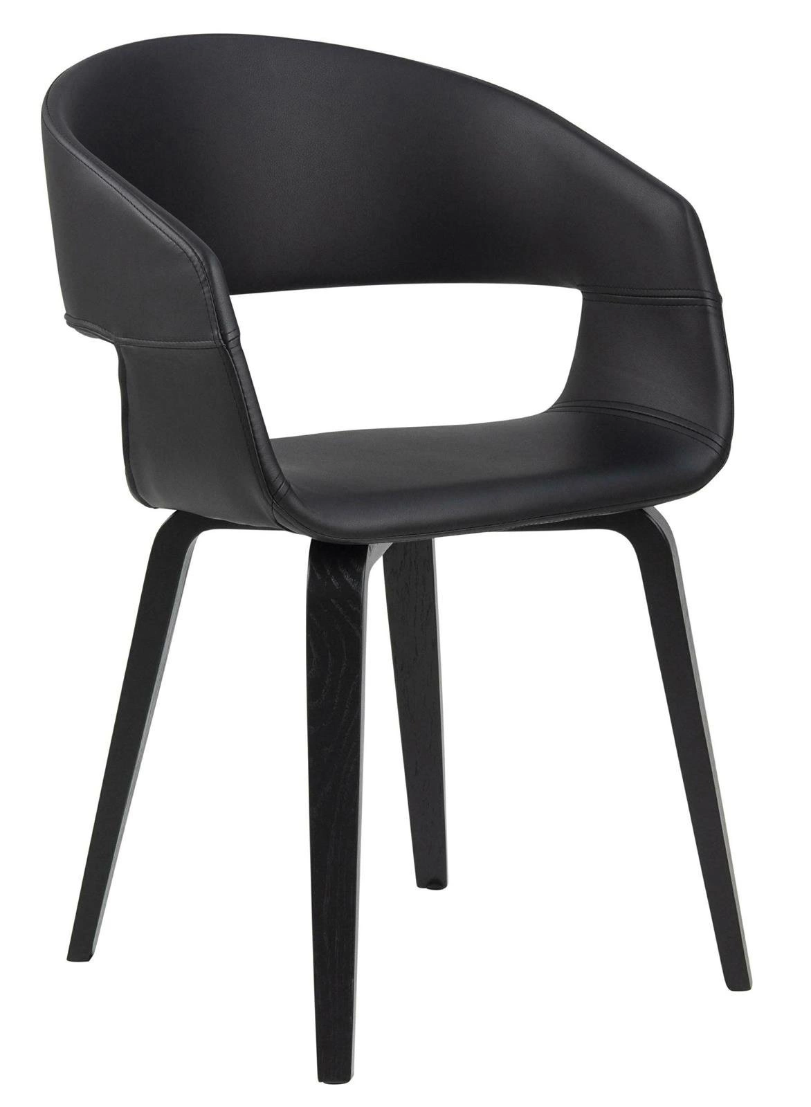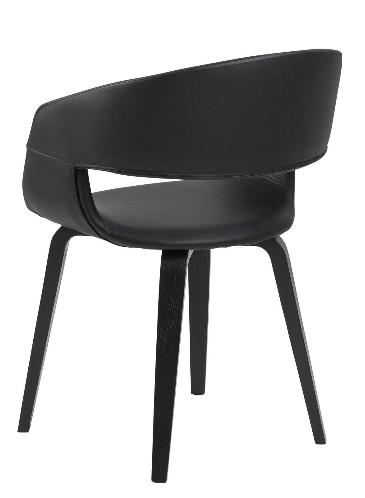 Krzesło tapicerowane Supernova marki Intesi to nowoczesny mebel zaprojektowany z myślą o komforcie i funkcjonalności w codziennym użytkowaniu. Czarna skóra ekologiczna w połączeniu z solidną podstawą z forniru dębowego nadaje mu elegancki, ponadczasowy wygląd. Dzięki kubełkowemu siedzisku z podłokietnikami oraz optymalnej wysokości (77 cm), krzesło świetnie sprawdzi się zarówno przy stole w jadalni, jak i w nowoczesnym salonie.