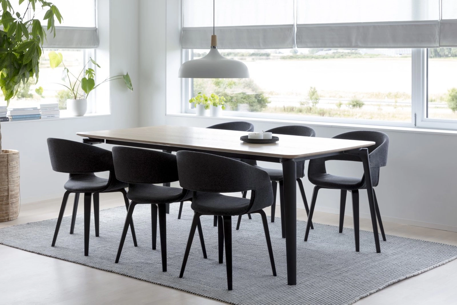 Z myślą o codziennym użytkowaniu, krzesło tapicerowane Supernova wyposażono w ergonomiczne oparcie oraz podłokietniki, które pozwalają na wygodne ułożenie rąk. Szerokość siedziska 52,5 cm oraz wysokość 45 cm gwarantują optymalną pozycję przy stole. Stabilna podstawa z czterema nogami z forniru dębowego zapewnia bezpieczeństwo nawet przy obciążeniu do 120 kg. Dzięki temu krzesło jest idealnym wyborem zarówno do nowoczesnej kuchni, jak i przestronnej jadalni czy eleganckiego salonu.