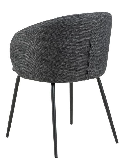 Krzesło Eleanor w kolorze szarym ciemnym to doskonały wybór zarówno na specjalne okazje, jak i do codziennych posiłków w jadalni. Wyjątkowe krzywizny siedziska oraz smukłe nogi z czarnej stali nadają temu krzesłu kobiecy i elegancki wygląd. Ciemnoszare obicie pokryte strukturalną tkaniną z efektem dwóch odcieni sprawia, że krzesło jest nie tylko estetyczne, ale także interesujące dla oka.