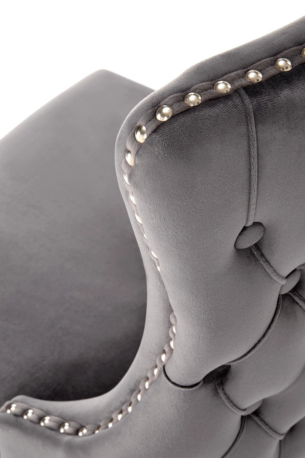 Krzesło Iridionne Velvet w popielatym kolorze to połączenie nowoczesnej elegancji i funkcjonalności, które doskonale wkomponuje się w różnorodne wnętrza. Wykonane z wysokiej jakości tkaniny welwet, krzesło wyróżnia się swoją wyjątkową miękkością i przyjemną w dotyku fakturą. Popielaty odcień nadaje mu subtelny i neutralny wygląd, dzięki czemu łatwo dopasuje się do różnorodnych wnętrz, od nowoczesnych po klasyczne aranżacje.